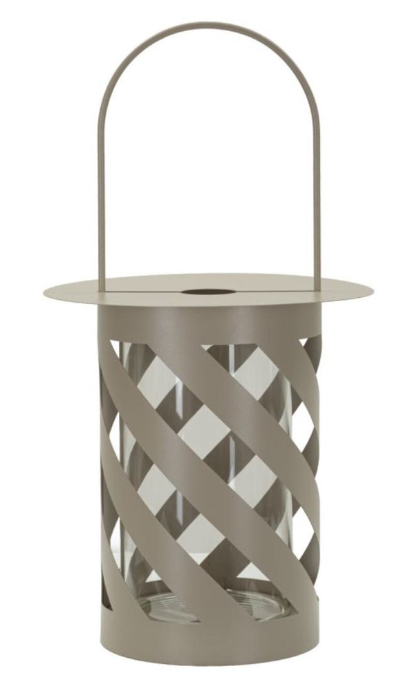 Diese Laterne aus Metall vereint elegantes Design mit stimmungsvoller Lichtwirkung und wird zu einem dekorativen Highlight in jedem Wohnbereich. Der Metallsockel in grauem Finish strahlt zeitlose Eleganz aus, während der gebogene Henkel nicht nur für einen charmanten Akzent sorgt, sondern auch praktisches Tragen und Aufhängen ermöglicht. Besonders auffällig ist das perforierte, spiralförmige Motiv, das dem Lampenkörper eine dynamische Wirkung verleiht. Durch das offene Design entstehen beim Einschalten faszinierende Licht- und Schattenspiele, die den Raum mit warmem, einladendem Licht erfüllen und eine gemütliche Atmosphäre schaffen. Der verspielte „Twist“-Effekt macht die Laterne zu einem echten Blickfang, der sich sowohl drinnen als auch auf überdachten Außenflächen stilvoll in Szene setzen lässt. Mit den Maßen von ca. 23 x 43 x 23 cm (Breite x Höhe x Tiefe) ist die Laterne kompakt genug, um flexibel platziert zu werden, und gleichzeitig groß genug, um als dekoratives Element zu wirken. Sie kombiniert hochwertige Materialien, kreatives Design und stimmungsvolle Lichtreflexe und sorgt so für eine elegante und warme Atmosphäre in jedem Raum.