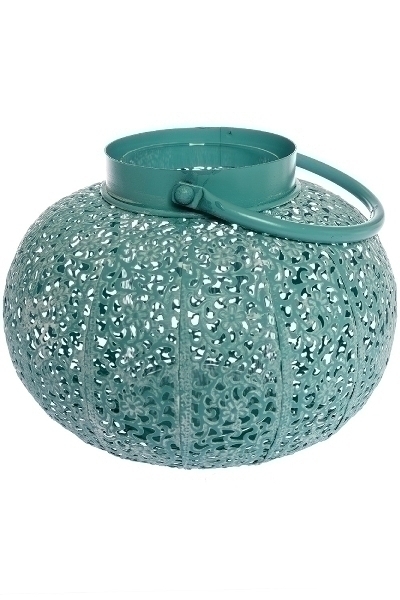Die große Orient Laterne Lale ist aus Metall, Türkis lackiert und mit Henkel. Der Glaseinsatz ist herausnehmbar. Die schönen gestanzten Ornamente im orientalischen Stil sind ein weiteres Highlight dieser Laterne und geben ihrem Zuhause oder Garten einen besonderen Touch.