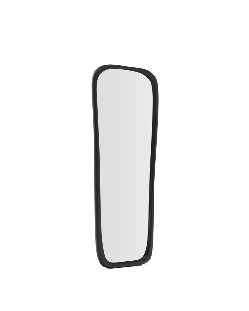 Dieser edle Spiegel ist weit mehr als ein praktisches Wohnaccessoire – er ist ein echtes Designstatement. Mit seiner organischen, fließenden Form und dem Rahmen aus massivem Teakholz strahlt er natürliche Eleganz und zeitlose Wertigkeit aus. Das schwarze Finish unterstreicht die feine Holzstruktur und verleiht dem Spiegel eine moderne, leicht skulpturale Anmutung, die sowohl in minimalistischen als auch in wohnlich-eleganten Interieurs perfekt zur Geltung kommt. Jedes Stück ist durch die individuelle Maserung des Teakholzes ein Unikat der Natur. Der harmonisch geschwungene Rahmen erinnert an organische Formen aus der Natur und schafft einen weichen, fließenden Kontrast zu klaren Linien und modernen Raumkonzepten. Dadurch wirkt der Spiegel nicht nur als funktionales Element, sondern als kunstvoller Blickfang, der Räumen Tiefe und Charakter verleiht. Die Rückseite aus stabilem Sperrholz sorgt für Langlebigkeit und sicheren Halt. Dank des integrierten Aufhängers lässt sich der Spiegel mühelos an der Wand befestigen – ob vertikal als eleganter Ganzkörperspiegel im Schlafzimmer oder Flur, oder horizontal als dekoratives Highlight im Wohnbereich. Mit seinen großzügigen Maßen von ca. 61 × 158 × 3,2 cm (Breite × Höhe × Tiefe) bietet er eine eindrucksvolle Präsenz, ohne aufdringlich zu wirken. Der Spiegel reflektiert nicht nur das Licht, sondern öffnet Räume optisch und verleiht ihnen eine warme, stilvolle Atmosphäre.