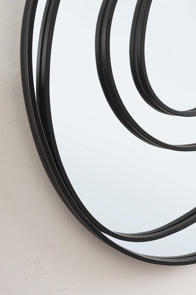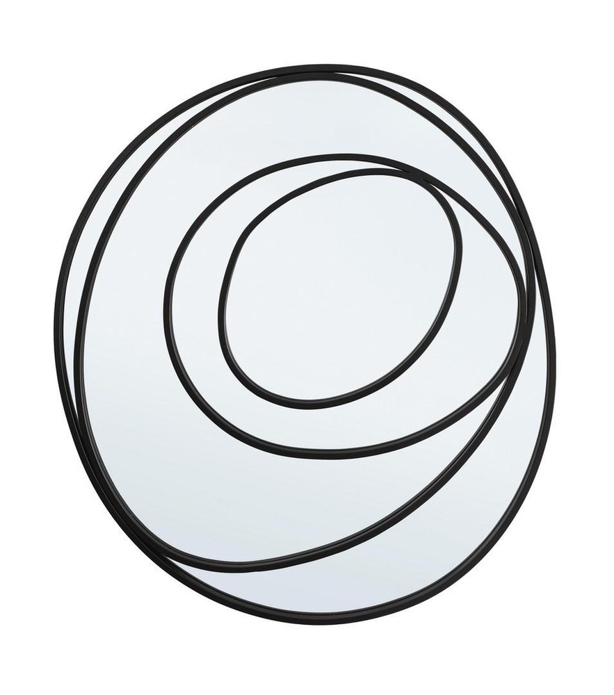 Dieser außergewöhnliche Wandspiegel ist weit mehr als ein funktionales Wohnaccessoire – er ist ein Kunstobjekt, das jedem Raum Charakter und Tiefe verleiht. Gefertigt aus epoxid-pulverbeschichtetem Stahl mit edlem schwarzem Finish, präsentiert sich der Spiegel in einer fließenden, organischen Form, die Natürlichkeit und Modernität perfekt miteinander verbindet. Ein besonderes Designelement sind die abstrakten, schwarzen Stahlschlieren, die sich kunstvoll über die Spiegelfläche ziehen. Sie verleihen dem Spiegel eine faszinierende Dynamik und machen jedes Stück zu einem echten Blickfang. Diese Linien wirken wie spontane Pinselstriche und schaffen ein Spiel aus Struktur, Tiefe und Reflexion, das sich je nach Lichteinfall immer wieder verändert. Die Rückseite besteht aus stabilem MDF und sorgt für eine langlebige, sichere Konstruktion. Dank der hochwertigen Verarbeitung und der pulverbeschichteten Stahloberfläche ist der Spiegel besonders robust und pflegeleicht. Ob im Flur, Wohnzimmer, Schlafzimmer oder im modernen Bad – dieser Spiegel setzt in jedem Raum ein stilvolles Statement. Er harmoniert wunderbar mit minimalistischen, industriellen oder künstlerisch inspirierten Wohnstilen und lässt sich sowohl einzeln als auch in Kombination mit anderen Wandobjekten effektvoll inszenieren.