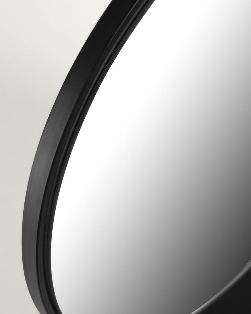 Setzen Sie auf zeitlose Eleganz und praktische Funktionalität mit diesem stilvollen Standspiegel. Der runde Spiegel ist von einem schlanken Rahmen aus Stahl mit schwarzem Finish umgeben, der eine moderne, klare Ästhetik ausstrahlt und jedem Raum eine dezente, aber markante Präsenz verleiht. Der integrierte Ständer aus Stahl macht den Spiegel vollständig freistehend. So können Sie ihn flexibel dort platzieren, wo Sie ihn benötigen: im Schlafzimmer, Ankleidezimmer oder Eingangsbereich. Dank des stabilen Rahmens und Ständers steht der Spiegel sicher und zuverlässig auf jedem ebenen Untergrund. Mit kompakten Maßen von ca. 36 x 45 x 9 cm ist der Spiegel platzsparend und dennoch groß genug, um sich bequem zu betrachten. Das schwarze Finish harmoniert mit nahezu allen Einrichtungsstilen – von modern über industriell bis hin zu klassisch – und verleiht dem Spiegel eine elegante, zeitlose Note. Dieser Standspiegel verbindet hochwertige Materialien, durchdachtes Design und maximale Flexibilität. Er schafft ein Gefühl von Weite, reflektiert Licht und wird so sowohl funktional als auch dekorativ zum Highlight in jedem Raum.