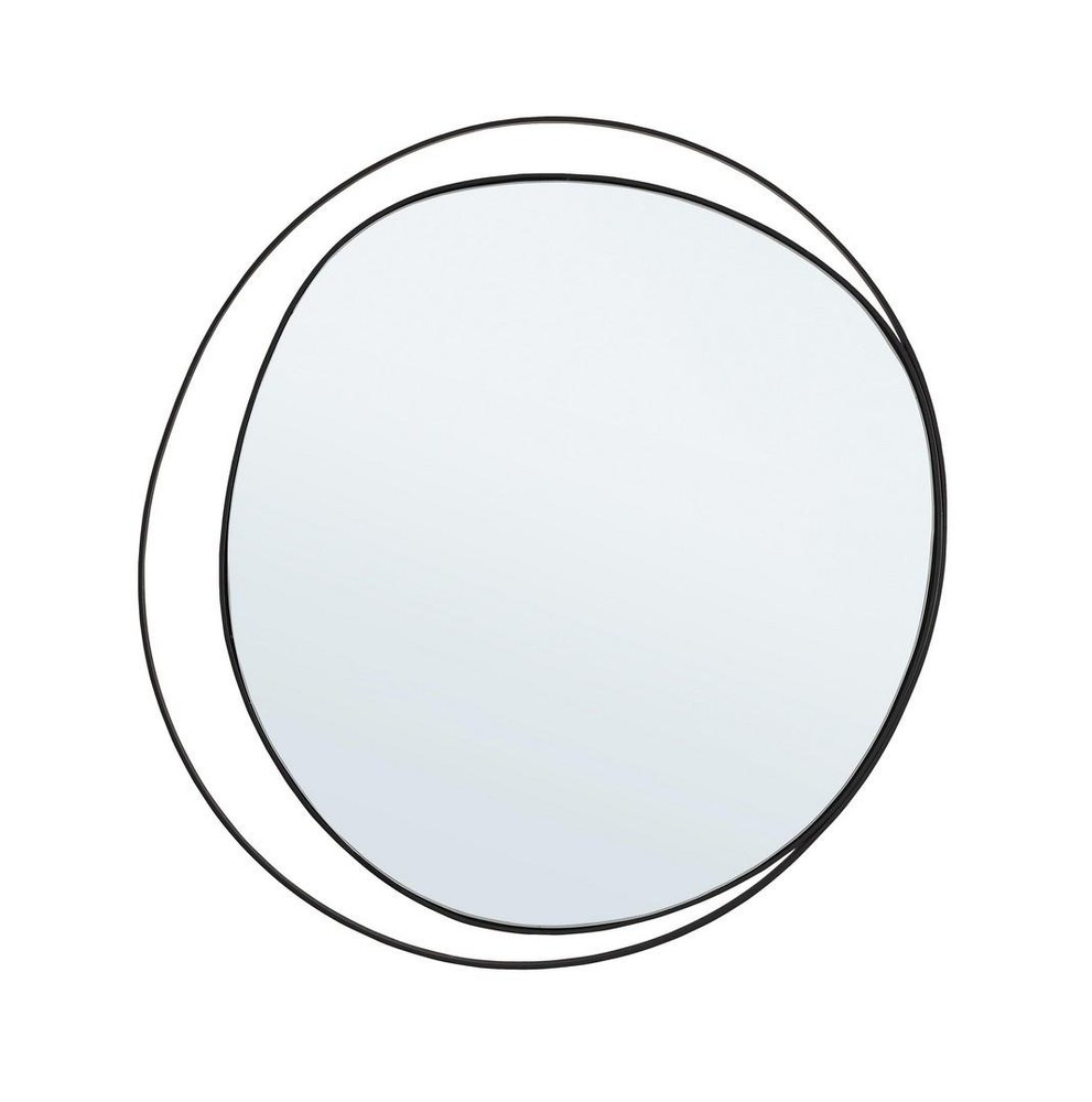 Dieser einzigartige Spiegel vereint modernes Design, hochwertige Materialien und organische Formen zu einem stilvollen Highlight für jeden Raum. Der Rahmen besteht aus robustem, epoxidpulverbeschichtetem Stahl mit elegantem schwarzem Finish, das dem Spiegel eine klare, zeitgemäße Linienführung verleiht und gleichzeitig Langlebigkeit sowie Stabilität garantiert. Die organische Form des Spiegels setzt harmonische Akzente und bringt Bewegung und Dynamik in Ihre Einrichtung. Das hochwertige Glas sorgt für eine klare, verzerrungsfreie Spiegelung, während die Rückseite aus stabilem MDF gefertigt ist und dem Möbelstück zusätzliche Festigkeit und eine edle Verarbeitung verleiht. Mit den Maßen von ca. 2 × 50 × 50 cm (Breite × Höhe × Tiefe) ist der Spiegel kompakt genug, um flexibel an verschiedenen Stellen platziert zu werden – sei es als dekoratives Highlight im Flur, über der Kommode im Schlafzimmer oder als stilvoller Akzent im Wohnzimmer. Dieses Möbelstück verbindet modernes Design, hochwertige Verarbeitung und organische Formen zu einem eleganten Accessoire, das Ihrem Raum Tiefe, Stil und Persönlichkeit verleiht.