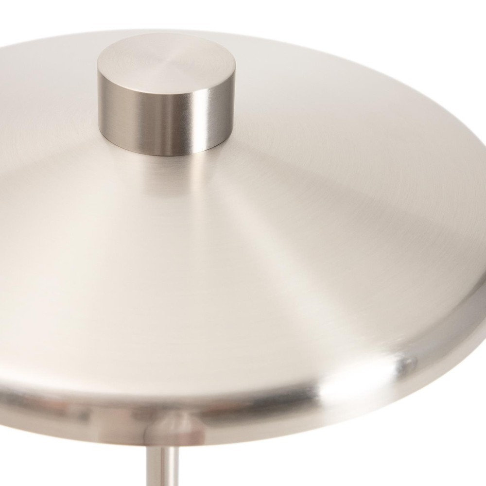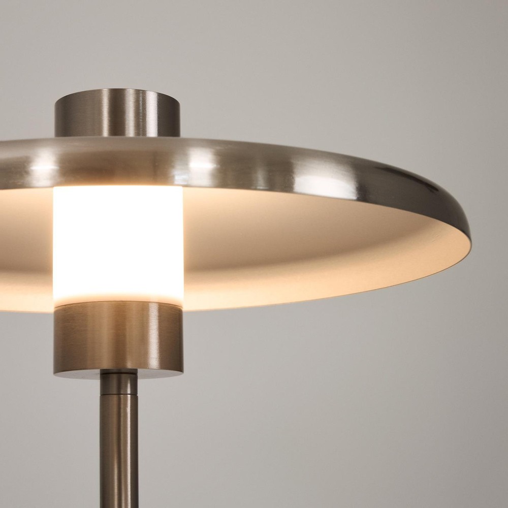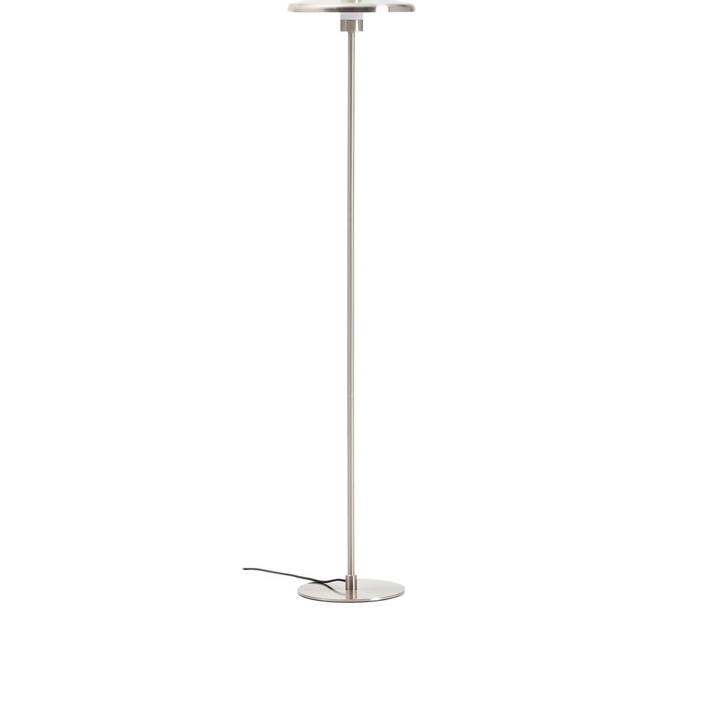 Dies ist eine Stehlampe, die modernes Design mit deutlichem Nutzwert verbindet. Ihre klare Silhouette aus satiniertem Stahl strahlt eine ruhige, nahezu skulpturale Präsenz aus, zurückhaltend genug, um sich unaufgeregt in den Raum einzufügen, bewusst genug, um als stilistisches Statement zu wirken. Die satinierte Stahlstruktur verleiht der Lampe eine matte, elegante Oberfläche, die Lichtreflexe weich abmildert und dem Design eine hochwertige, zeitgemäße Anmutung gibt.