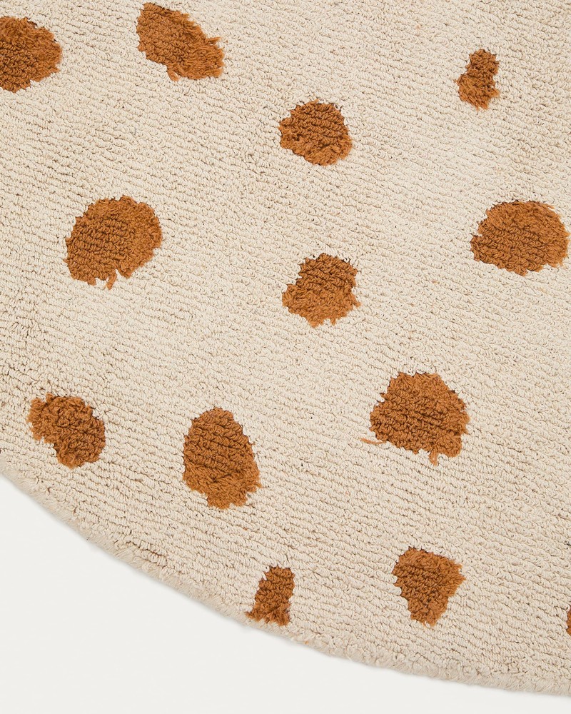 Setzen Sie stilvolle Akzente in Ihrem Zuhause mit diesem außergewöhnlichen runden Teppich in elegantem Beige, verziert mit einem ausdrucksstarken Geparden-Design in warmem Orange. Die harmonische Farbkombination verbindet natürliche Zurückhaltung mit einem lebendigen Blickfang und verleiht jedem Raum eine moderne, zugleich gemütliche Ausstrahlung. Mit seinen Maßen von ca. 100 x 100 x 1 cm eignet sich der Teppich ideal als dekoratives Highlight im Wohn- oder Schlafzimmer, im Eingangsbereich oder auch im Jugendzimmer. Die runde Form sorgt für eine weiche, fließende Raumwirkung und lockert klare Linien im Interieur auf. Ob unter einem kleinen Beistelltisch, neben dem Bett oder frei im Raum platziert – dieser Teppich zieht die Blicke gekonnt auf sich. Gefertigt aus einer hochwertigen Mischung aus Baumwolle und Polyester, vereint er angenehmen Komfort mit langlebiger Qualität. Die Baumwolle schenkt Ihnen eine weiche, natürliche Haptik, während der Polyesteranteil für Formstabilität und Strapazierfähigkeit sorgt. So erhalten Sie einen Teppich, der nicht nur optisch überzeugt, sondern auch im Alltag zuverlässig besteht. Besonders charmant: Jeder Teppich wird in sorgfältiger Handarbeit gefertigt. Dadurch entstehen leichte Variationen in Muster und Verarbeitung, die jedes Stück zu einem Unikat machen. Diese feinen Unterschiede sind kein Makel, sondern ein Zeichen echter Handwerkskunst und unterstreichen den individuellen Charakter Ihres Teppichs. Mit seinem stilvollen Geparden-Motiv in Orange auf sanftem Beige verbindet dieser runde Teppich modernes Design mit wohnlicher Wärme – eine geschmackvolle Ergänzung für alle, die das Besondere lieben.