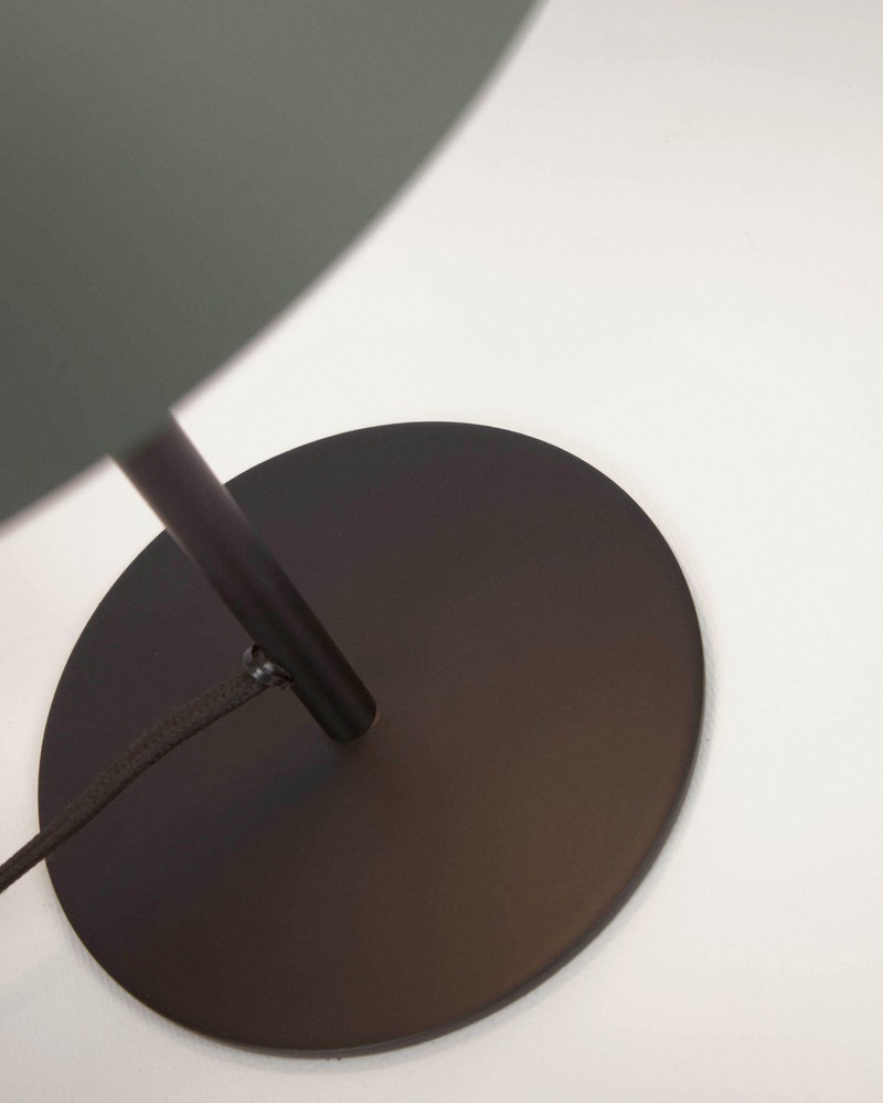 Diese Tischlampe aus Metall überzeugt durch ihr ausdrucksstarkes Design und setzt moderne Akzente in Ihrem Wohnraum. Das schlanke, schwarz lackierte Lampenbein bildet einen eleganten Kontrast zum Schirm mit grün lackierter Oberfläche und verleiht der Leuchte eine zeitgemäße, stilvolle Ausstrahlung. Die harmonische Farbgestaltung wirkt zugleich edel und markant und macht die Lampe zu einem echten Blickfang auf Sideboards, Beistelltischen oder Nachttischen. Der Metallschirm sorgt für eine gezielte Lichtführung und schafft eine angenehme, atmosphärische Beleuchtung. Die grüne Lackierung verleiht dem Licht eine besondere Tiefe und unterstreicht den dekorativen Charakter der Lampe. Dank der kompakten Form eignet sich die Tischlampe ideal als zusätzliche Lichtquelle, die sowohl funktional als auch gestalterisch überzeugt. Mit einer Kabellänge von ca. 250 cm bietet die Leuchte viel Flexibilität bei der Platzierung. Das hochwertige Anschlusskabel mit Stoffbezug fügt sich optisch harmonisch in das Design ein und unterstreicht den modernen, hochwertigen Anspruch der Tischlampe. Die Maße von ca. 22 × 33 × 22 cm (Breite × Höhe × Tiefe) machen die Lampe kompakt und vielseitig einsetzbar, auch in kleineren Räumen. Ob im Wohnzimmer, Schlafzimmer oder Arbeitsbereich – diese Tischlampe vereint klares Design, hochwertige Materialien und praktische Funktionalität und setzt stilvolle Akzente in Ihrem Zuhause.