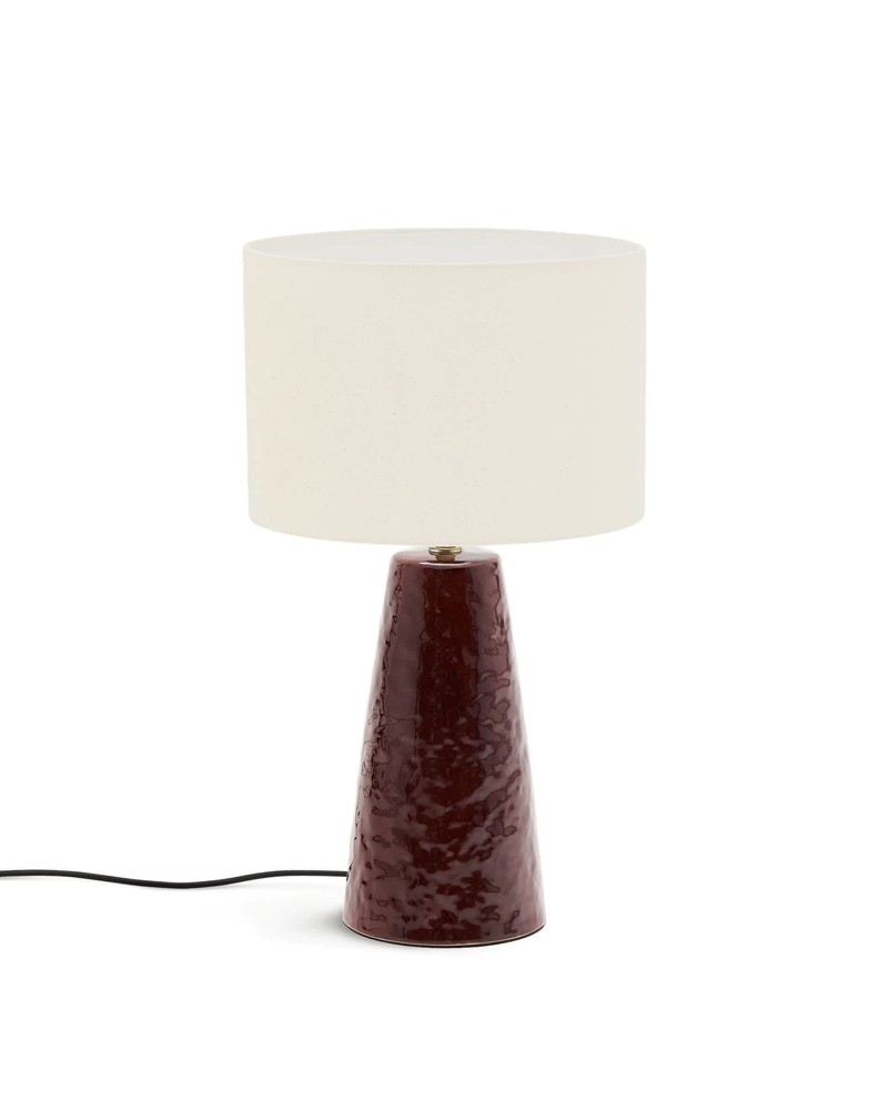 Tischlampe Drava 33 x 49 x 33 cm Keramik Leinen Burgunderrot Beige