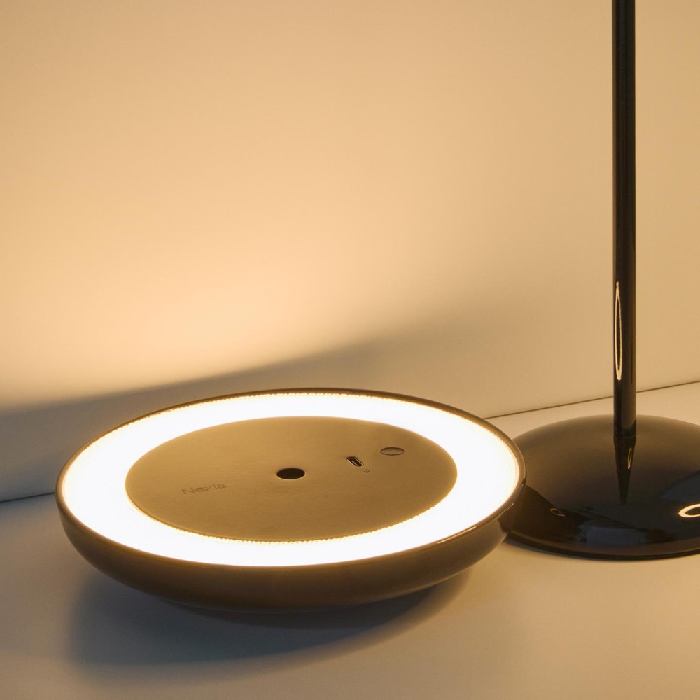 Die Tischlampe vereint zeitlose Eleganz mit innovativer Funktionalität. Die lackierte Aluminiumoberfläche unterstreicht die hochwertige Anmutung, während die minimalistischen Linien ein ruhiges, stilvolles Gesamtbild erzeugen. Der verstellbare Lampenkopf macht sie zu einem besonders flexiblen Lichtpartner.