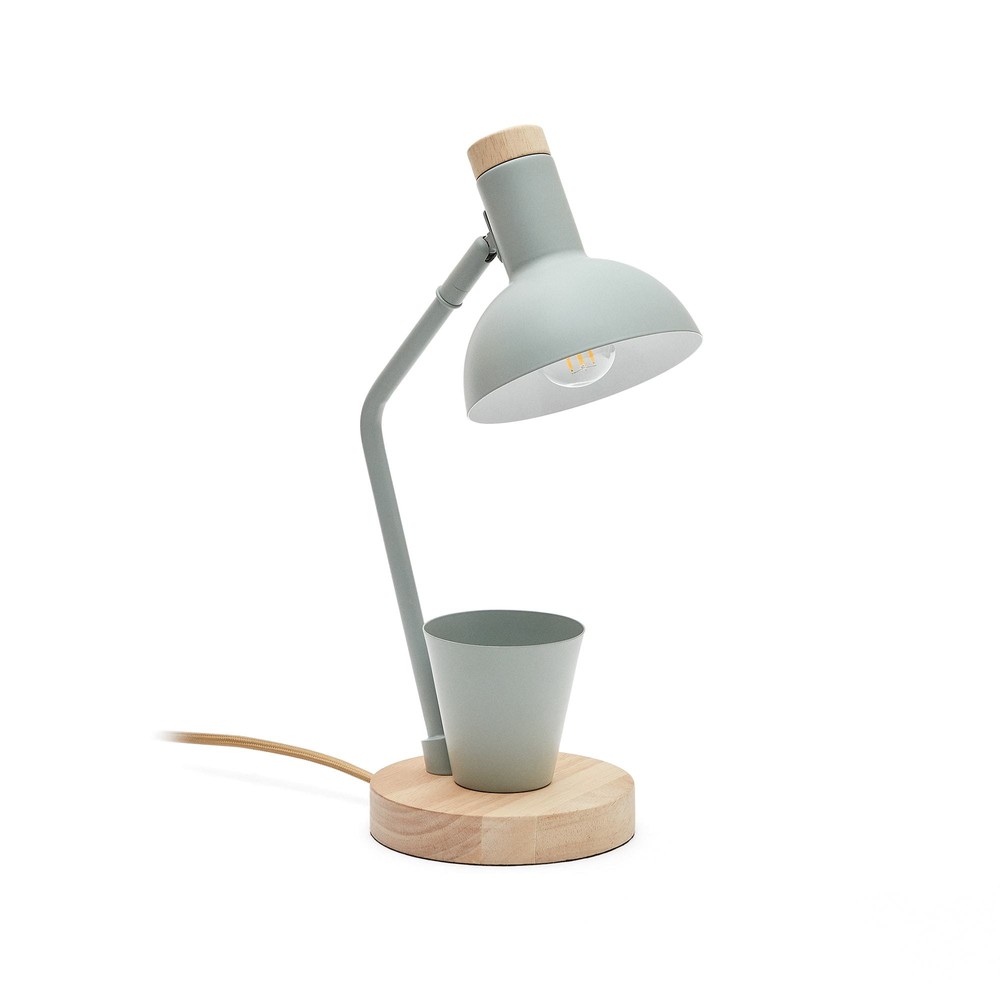 Bringen Sie Funktionalität und stilvolles Design auf Ihren Schreibtisch mit dieser eleganten Schreibtischlampe aus Metall in frischem Grün. Das hochwertige Finish sorgt für einen lebendigen Farbakzent, der sich harmonisch in moderne, natürliche oder kreative Arbeitsbereiche einfügt, während das minimalistische Design für eine klare, ordentliche Optik sorgt. Besonders praktisch: Die Lampe verfügt über integrierte Stifthaltern, die dafür sorgen, dass Schreibutensilien stets griffbereit und der Arbeitsplatz aufgeräumt bleibt. So schaffen Sie nicht nur Licht, sondern auch Ordnung und Übersicht auf Ihrem Schreibtisch – ideal für produktives Arbeiten, kreative Projekte oder den täglichen Büroalltag. Der Schirm der Lampe ist schwenkbar, sodass Sie das Licht gezielt ausrichten können und jederzeit eine optimale Ausleuchtung Ihres Arbeitsbereichs erhalten. Der Sockel aus massivem Gummibaumholz in Natur sorgt für Stabilität und verleiht der Lampe einen warmen, organischen Kontrast zum metallischen Lampenkörper, wodurch ein harmonisches Materialspiel entsteht. Mit kompakten Maßen von ca. 13 x 37 x 23 cm passt die Lampe auf nahezu jeden Schreibtisch, ohne dabei wertvollen Platz zu beanspruchen, und wird gleichzeitig zu einem dekorativen Blickfang. Diese Schreibtischlampe vereint hochwertige Materialien, durchdachte Funktionalität und stilvolles Design. Sie schafft eine angenehme Lichtatmosphäre, unterstützt effizientes Arbeiten und sorgt dafür, dass Ihr Schreibtisch sowohl praktisch als auch ästhetisch überzeugt.