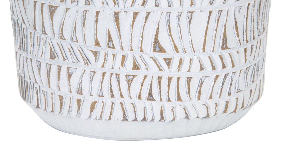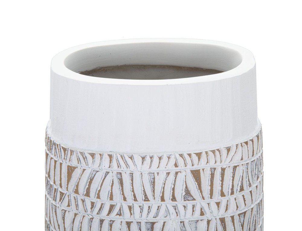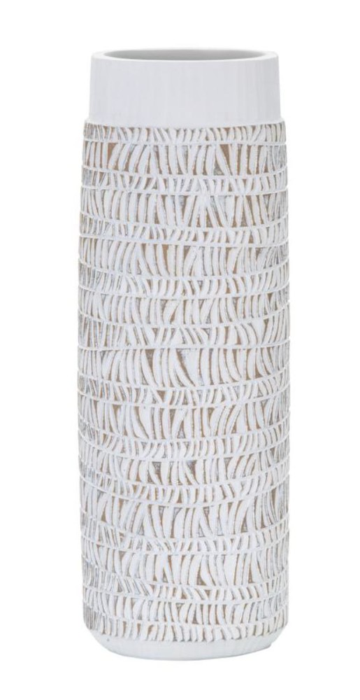 Entdecken Sie diese beeindruckende Vase aus hochwertigem Harz, die durch ihr elegantes weißes Finish sofort ins Auge fällt. Mit ihrer zeitlosen Ästhetik vereint sie modernes Design mit künstlerischer Raffinesse und schafft so eine harmonische Atmosphäre in jedem Raum. Das sorgfältig ausgearbeitete, abstrakte und geometrische Schnitzdesign verleiht der Vase eine raffinierte Textur und einen einzigartigen Charakter, der sowohl minimalistischen als auch dekorativen Ansprüchen gerecht wird. Die filigranen, kunstvoll eingearbeiteten Dekorationen aus geometrischen Formen und abstrakten Mustern verleihen der Vase eine besondere Tiefe und Dynamik. Das weiße Finish unterstreicht die filigranen Details und sorgt für eine elegante, moderne Anmutung. Ob als Blickfang auf einem stilvollen Beistelltisch, im Eingangsbereich oder als elegantes Highlight in Ihrer Wohnlandschaft – diese Vase bietet vielfältige Gestaltungsmöglichkeiten und setzt Ihre Blumenarrangements gekonnt in Szene. Gefertigt aus langlebigem Harz, ist dieses Kunstwerk äußerst robust und pflegeleicht. Es verbindet kreative Handwerkskunst mit hochwertigen Materialien und schafft so ein dekoratives Element, das sowohl funktional als auch ästhetisch überzeugt. Lassen Sie sich von der zeitlosen Schönheit und der kunstvollen Gestaltung dieser Vase begeistern und setzen Sie stilvolle Akzente in Ihrem Zuhause.