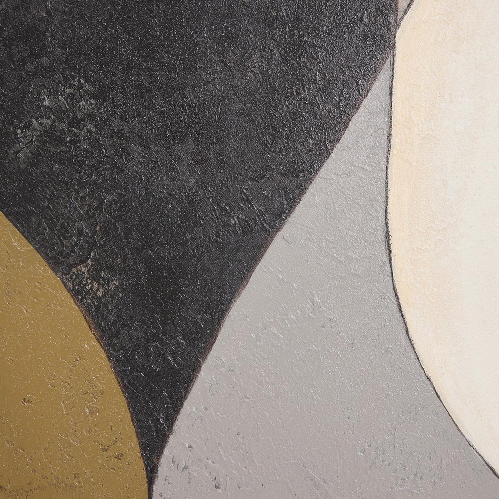 Ein Bild, das Räume atmen lässt. Diese abstrakte Leinwand verbindet sanfte, organische Linien mit einem reduzierten, eleganten Farbspektrum aus Grautönen und warmem Senfgelb. Die Formen scheinen ineinander zu gleiten, schneiden sich, umarmen sich und erzeugen so ein stetes Gefühl von Bewegung, ohne laut zu sein.