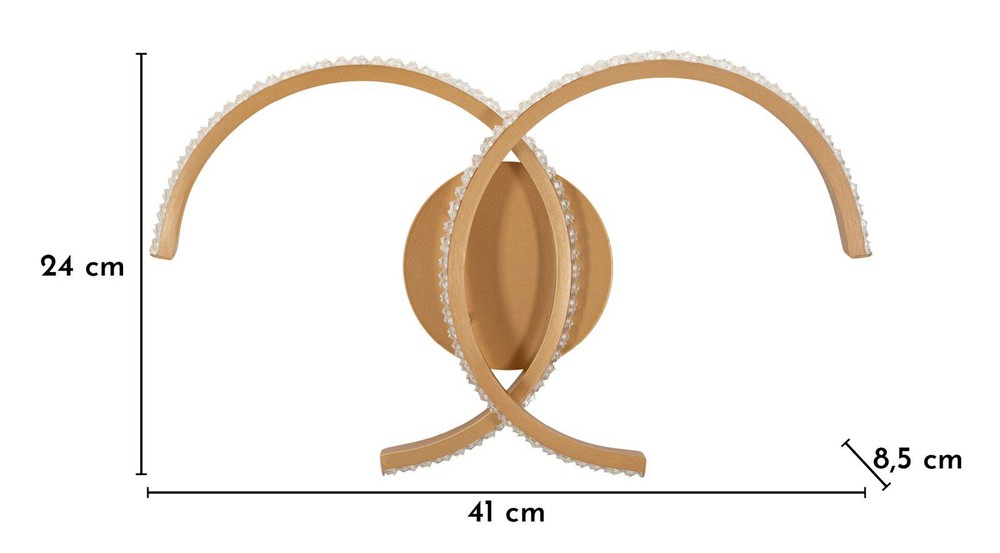 Diese Wandleuchte begeistert mit einem modernen, skulpturalen Design und setzt stilvolle Lichtakzente an jeder Wand. Die elegante Doppellinie in geschwungener Form verleiht der Leuchte eine dynamische und zugleich harmonische Ausstrahlung, die sofort ins Auge fällt. Gefertigt aus Metall mit goldenem Finish, strahlt sie Wärme und Eleganz aus und wird zu einem dekorativen Highlight im Raum. Die fließenden Kurven der Struktur schaffen eine interessante Lichtführung und unterstreichen den künstlerischen Charakter der Leuchte. Gleichzeitig sorgt die integrierte LED-Beleuchtung für eine gleichmäßige, angenehme Ausleuchtung. Dank der drei wählbaren Lichttemperaturen lässt sich die Lichtstimmung flexibel anpassen – von warmem, stimmungsvollem Licht bis hin zu neutraler oder kühler Beleuchtung für eine modernere Atmosphäre. Mit ihren Maßen von ca. 41 x 24 x 8,5 cm (Breite x Höhe x Tiefe) wirkt die Leuchte präsent, ohne viel Platz einzunehmen. Dadurch eignet sie sich ideal als dekorativer Lichtpunkt, der Wände stilvoll in Szene setzt und gleichzeitig für eine angenehme Beleuchtung sorgt. Die Kombination aus goldenem Metall, fließender Form und moderner LED-Technologie macht diese Wandleuchte zu einer eleganten und funktionalen Ergänzung für moderne Wohnräume.