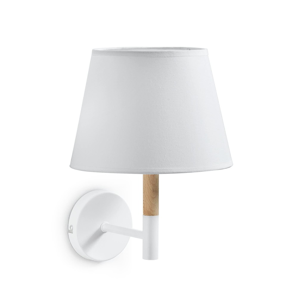 Verleihen Sie Ihren Räumen eine moderne, natürliche Note mit dieser eleganten Wandleuchte, die Qualität, Funktionalität und zeitloses Design perfekt vereint. Der Lampenschirm besteht aus 100 % Baumwolle in strahlendem Weiß, was für ein sanftes, gleichmäßiges Licht sorgt und eine behagliche, einladende Atmosphäre schafft. Der Arm der Leuchte kombiniert robusten Stahl mit massivem Buchenholz und setzt dabei auf einen harmonischen Materialmix, der sowohl Stabilität als auch optische Wärme bietet. Die weiße Oberfläche von Stahl und Lampenschirm erzeugt ein einheitliches, minimalistisches Erscheinungsbild, das sich mühelos in moderne, skandinavische oder klassische Einrichtungskonzepte einfügt. Dank der durchdachten Konstruktion ist die Wandleuchte flexibel einsetzbar: Sie eignet sich ideal als Leselicht neben dem Bett, als stilvolle Akzentbeleuchtung im Wohnzimmer oder Flur oder als dezentes Lichtobjekt, das Ihrem Raum zusätzlichen Charakter verleiht. Die Kombination aus hellem Stoffschirm und hochwertigem Holzarm sorgt für ein harmonisches Zusammenspiel aus Licht, Material und Form. Mit kompakten Maßen von ca. 22 x 31 x 23,5 cm fügt sich die Leuchte dezent in jede Wandfläche ein und wirkt dabei elegant und filigran. Diese Wandleuchte verbindet durchdachte Funktionalität mit ästhetischer Klarheit und wird so zu einem stilvollen, langlebigen Highlight, das Ihren Wohnraum auf angenehme Weise erhellt.