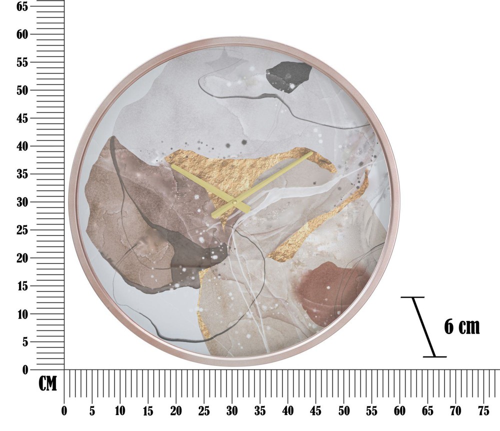 Bringen Sie mit der Wanduhr elegantes Design direkt in Ihr Zuhause. Diese Uhr verbindet modernes Design in einem liebevoll gestalteten Metall-Statement. Die harmonische Farbwelt bringt ein wundervolles Feeling in jeden Einrichtungsstil. Ob im Flur, über der Anrichte im Esszimmer oder im Wohnzimmer, die Uhr setzt überall Akzente. Kombinieren Sie die Uhr mit hübschen Kissen, Accessoires und Vorhängen für das perfekte Feeling.