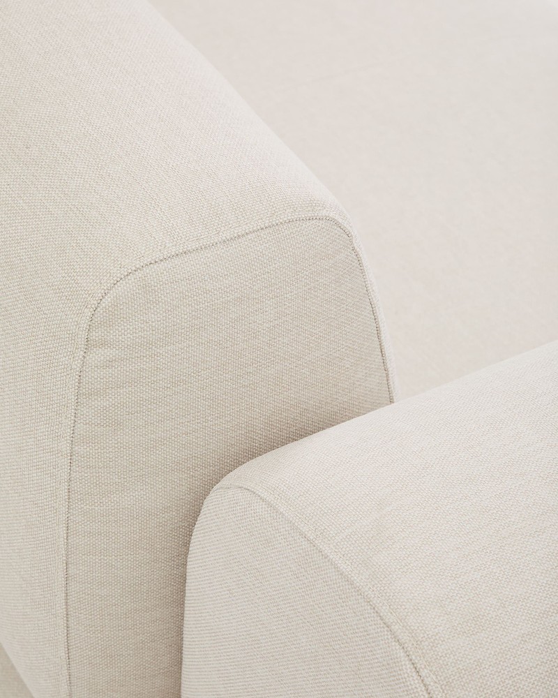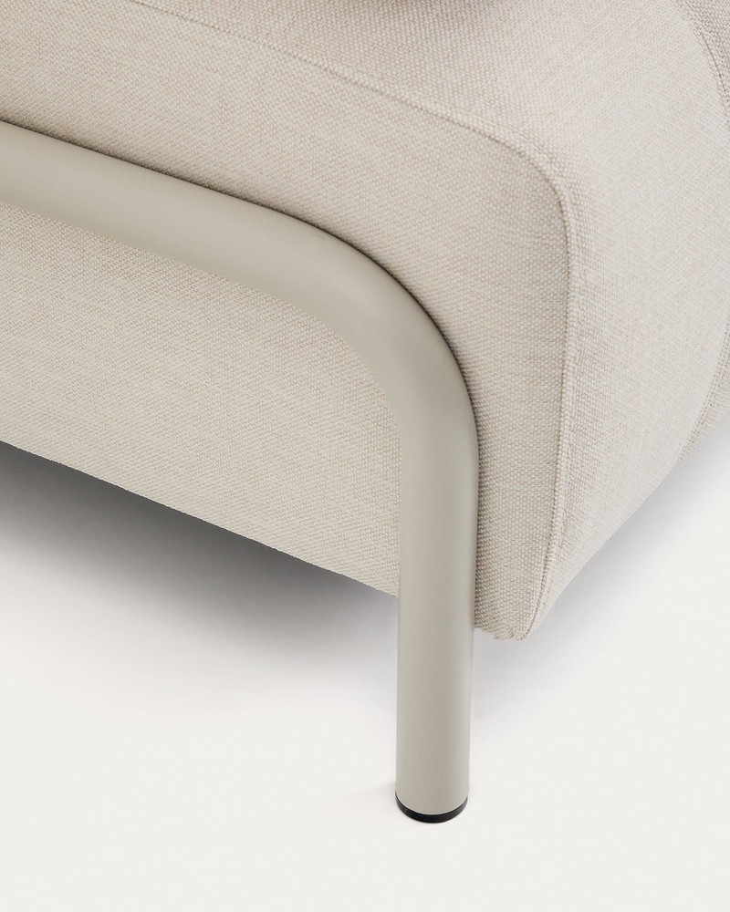 Dieses 2-Sitzer-Modul verbindet elegantes Design, hochwertige Materialien und intelligente Funktionalität zu einem Möbelstück, das sich nahtlos an jede Wohnsituation anpasst. Das Gestell aus pulverbeschichtetem Stahl in einem feinen beigen Farbton mit Mikrostruktur verleiht dem Sofa eine moderne, edle Ausstrahlung und sorgt gleichzeitig für hohe Stabilität und Langlebigkeit. Der mittelfeste Sitzkomfort entsteht durch die Kombination aus elastischem Gurtband und mehrschichtigen Schaumstoffpolstern mit Dichten von 28 kg/m³ und 18 kg/m³. Diese durchdachte Polsterung bietet eine perfekte Balance zwischen angenehmer Weichheit und optimaler Unterstützung – ideal für entspanntes Sitzen, Lesen oder gemütliche Abende zu zweit. Ein besonderes Highlight dieses Moduls ist seine Wandlungsfähigkeit: Sowohl die Armlehnen als auch die Rückenlehnen lassen sich mühelos abnehmen. Im Handumdrehen verwandelst du das Sofa in ein komfortables Bett mit einer großzügigen Liegefläche von 98 × 200 cm – perfekt für Gäste oder für Räume, in denen Flexibilität gefragt ist. Der Bezug besteht aus doppelseitigem Crevin-Chenille-Gewebe in elegantem Écru, das durch seine feine Struktur, Strapazierfähigkeit und angenehme Haptik überzeugt. Das Material enthält recyceltes Polyester, ist pflegeleicht, abnehmbar und damit ideal für den modernen Alltag geeignet. Mit seiner klaren Linienführung, den quadratischen Armlehnen und dem zeitlosen Farbkonzept fügt sich das Sofa harmonisch in verschiedenste Wohnstile ein – von skandinavisch über modern bis hin zu natürlich-minimalistisch.