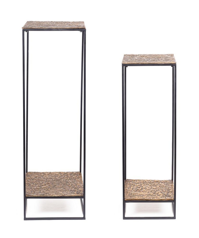 2er Set Beistelltisch Mysore 40 x 40 x 123 cm Aluminium Metall Schwarz Gold