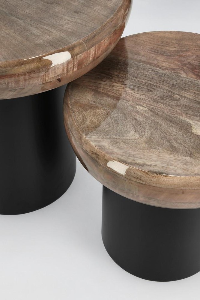 2er Set Couchtisch Talin 45 x 45 x 44 cm Mangoholz Stahl Braun Schwarz