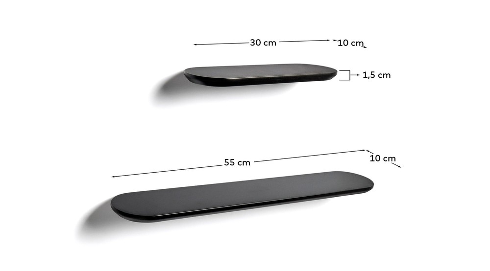 2er Set Regal Arely 30/55 x 1,5 x 10 cm MDF Stahl Schwarz
