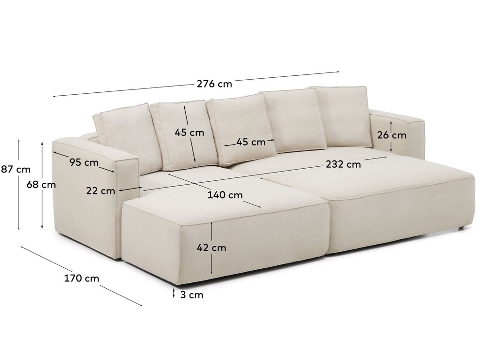 - Maße: Breite x Höhe x Tiefe: ca. 276 x 87 x 172,5 cm