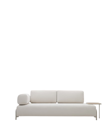 3-Sitzer-Sofa Compo 232 x 82 x 98 cm beiger Chenille, Metall grau, Tablett groß