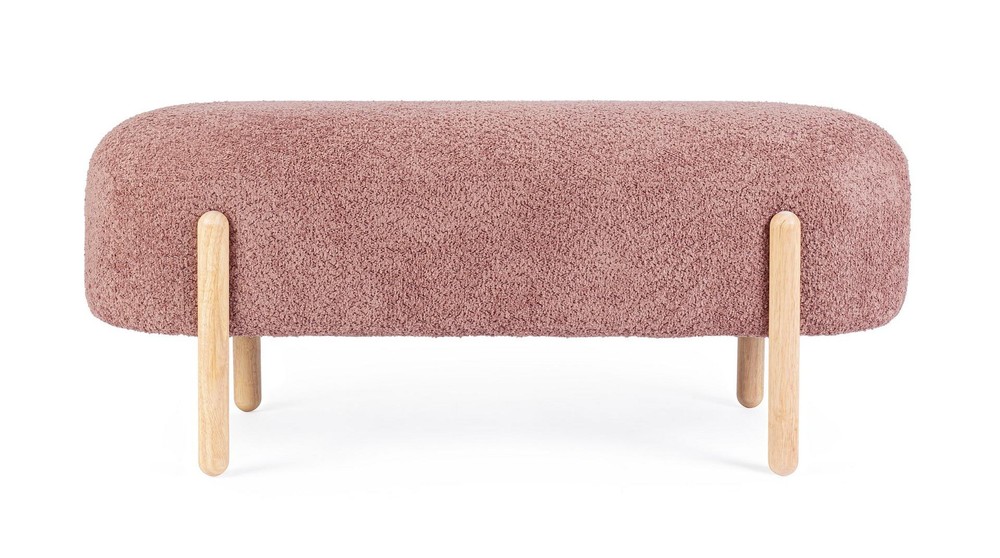 Diese charmante Bank verbindet modernes Design mit behaglichem Komfort und einem Hauch von Retro-Eleganz. Der solide Korpus aus MDF und Sperrholz bildet die stabile Basis, während die weiche Polsterung aus Polyurethanschaum und der hochwertige Polyesterbezug in angesagter Bouclé-Optik für ein luxuriöses Sitzgefühl sorgen. Der feine, strukturierte Stoff in einem sanften Rosa/Pink verleiht der Bank einen modernen, zugleich wohnlich-femininen Charakter – perfekt, um stilvolle Akzente im Wohn-, Schlaf- oder Eingangsbereich zu setzen. Getragen wird die Sitzfläche von stabilen Beinen aus Kautschukholz mit natürlichem Finish, die dem Design Wärme und Leichtigkeit verleihen. Der gelungene Materialmix aus Holz und Bouclé-Stoff schafft ein harmonisches Gesamtbild, das sich mühelos in verschiedene Einrichtungsstile einfügt – von modern über skandinavisch bis hin zu elegant-retro. Ob als praktische Sitzgelegenheit im Flur, am Fußende des Bettes oder als dekoratives Statement-Piece im Wohnzimmer: Diese Bank überzeugt nicht nur durch ihren Komfort, sondern auch durch ihre zeitlose Ästhetik.