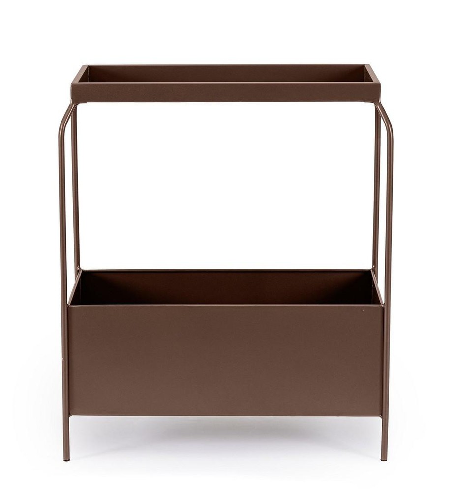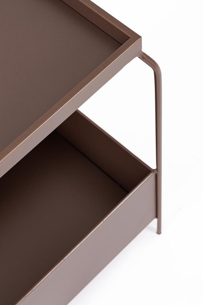 Dieser stilvolle Beistelltisch vereint minimalistisches Design mit funktionaler Raffinesse. Gefertigt aus hochwertigem, epoxid-pulverbeschichtetem Stahl mit edlem braunem Finish, präsentiert sich das Möbelstück als harmonische Mischung aus Robustheit und Eleganz. Die feine Pulverbeschichtung sorgt nicht nur für eine angenehm glatte Oberfläche, sondern schützt den Tisch zugleich dauerhaft vor Kratzern und Abnutzung. Seine offene, luftige Struktur verleiht dem Tisch eine moderne Leichtigkeit und macht ihn zu einem vielseitigen Begleiter in jedem Wohnbereich – ob neben dem Sofa, dem Sessel oder im Schlafzimmer als stilvolle Ablage. Die klare Linienführung und das reduzierte Design unterstreichen den zeitlosen Charakter und passen perfekt zu modernen, industriellen oder skandinavischen Einrichtungsstilen. Besonders praktisch: Unter der Tischplatte verfügt der Beistelltisch über eine zusätzliche Ablagefläche mit erhöhtem Rand – ideal, um Bücher, Zeitschriften, Fernbedienungen oder Dekoelemente sicher und geordnet abzulegen. So verbindet er auf elegante Weise Form und Funktion.