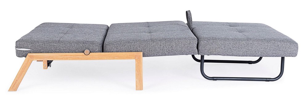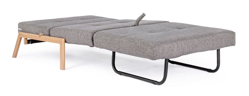 Kombinieren Sie zeitgemäßes Design mit hoher Funktionalität – mit diesem stilvollen Sofabett, das sich sowohl als komfortables Sitzmöbel als auch als praktischer Schlafplatz ideal eignet. Das Gestell aus robustem Stahl überzeugt durch Stabilität und Langlebigkeit und ist mit einer holzähnlichen Pulverbeschichtung auf Epoxidbasis veredelt. Diese besondere Oberfläche verbindet die natürliche Optik von Holz mit den Vorteilen einer widerstandsfähigen Metallkonstruktion und verleiht dem Möbelstück einen modernen, eleganten Charakter. Die Polsterung aus hochwertigem Polyurethanschaum sorgt für ein angenehm weiches Sitz- und Liegegefühl, während das beschichtete Polyestergewebe in neutralem Grau eine pflegeleichte und langlebige Oberfläche bietet. Ein passendes Kissen in Grau ist inklusive und ergänzt den Komfort, sodass Sie sowohl beim Sitzen als auch beim Liegen entspannt verweilen können. Mit seinen kompakten Maßen von ca. 96 × 79 × 95 cm (Breite × Höhe × Tiefe) eignet sich das Sofabett optimal für Wohnzimmer, Gästezimmer oder multifunktionale Räume. Im ausgezogenen Zustand bietet es eine großzügige Liegefläche von ca. 95 × 198 × 36 cm, die auch längeren Übernachtungen komfortabel Platz bietet. Das klare, moderne Design in Kombination mit der dezenten Farbgebung macht das Sofabett zu einem stilvollen Möbelstück, das sowohl optisch als auch funktional überzeugt. Dieses Sofabett vereint Stabilität, Komfort und modernes Design in einem Möbelstück – ideal für alle, die einen flexiblen, eleganten und langlebigen Begleiter für ihr Zuhause suchen.