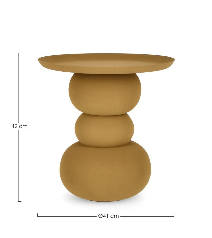 Dieser außergewöhnliche Couchtisch vereint modernes Design mit künstlerischem Charme und wird so zum stilvollen Blickfang in jedem Wohnzimmer. Gefertigt aus robustem Stahl und versehen mit einer hochwertigen epoxid-pulverbeschichteten Oberfläche, überzeugt der Tisch durch seine matte, leicht raue Textur, die das lebendige senfgelbe Finish besonders zur Geltung bringt. Die Farbe verleiht dem Möbelstück eine warme, einladende Ausstrahlung und lässt sich hervorragend mit modernen, skandinavischen oder industriellen Einrichtungsstilen kombinieren. Besonders markant ist das innovative Tischbein: Drei aufeinanderliegende Kugeln in unterschiedlichen Größen – groß, klein und mittel – bilden das stabile Gestell und verleihen dem Tisch eine spielerische, skulpturale Note. Die runde Tischplatte sorgt für eine harmonische Gesamtwirkung und bietet gleichzeitig praktische Ablagefläche für Bücher, Getränke oder dekorative Objekte. Dieser Couchtisch ist nicht nur ein funktionales Möbelstück, sondern auch ein echtes Designobjekt, das jedem Raum Persönlichkeit verleiht. Ob als Akzent im Wohnzimmer, als Beistelltisch im Lesebereich oder als Highlight in einem modernen Studio – er zieht garantiert alle Blicke auf sich.