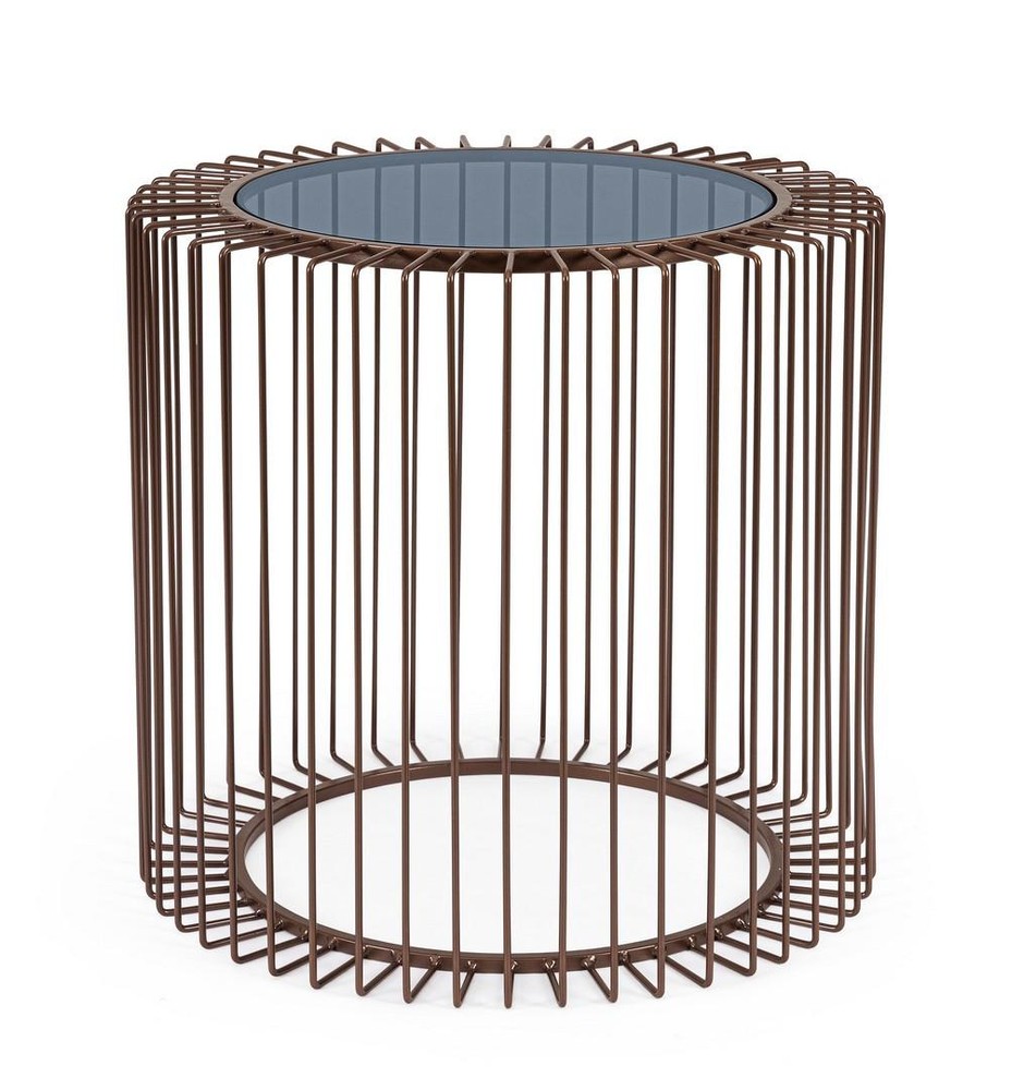 Dieser stilvolle Couchtisch vereint moderne Leichtigkeit mit industrieller Stabilität – ein echtes Highlight für jedes Wohnzimmer. Mit seiner runden Glasplatte, dem offenen Gestell aus Stahl und dem edlen braunen Finish ist er nicht nur ein funktionales Möbelstück, sondern ein dekoratives Designelement, das Ihrem Raum Charakter verleiht. Die transparente Tischplatte aus gehärtetem Glas sorgt für eine helle, luftige Optik und verleiht dem Tisch eine moderne, fast schwebende Leichtigkeit. Dank des robusten Sicherheitsglases ist die Platte nicht nur ästhetisch ansprechend, sondern auch äußerst widerstandsfähig gegen Kratzer und Belastungen – ideal für den täglichen Gebrauch. Bücher, Vasen oder Deko-Objekte kommen auf der gläsernen Oberfläche besonders gut zur Geltung, ohne den Raum visuell zu überladen. Das offene Untergestell aus Stahl bringt strukturelle Stabilität in das Design und bildet mit seiner geometrischen Form einen spannenden Kontrast zur runden Platte. Das braune Finish verleiht dem Metall Wärme und Tiefe, wodurch sich der Tisch harmonisch in verschiedene Einrichtungsstile einfügt – von modern-minimalistisch über urban bis hin zu Industrial Chic. Die epoxidharzbasierte Pulverbeschichtung macht das Gestell zusätzlich resistent gegenüber Kratzern, Feuchtigkeit und Abnutzung – perfekt für langlebigen Wohnkomfort. Mit seinen kompakten Maßen von ca. 50 x 50 x 48 cm (L x B x H) eignet sich der Tisch hervorragend für kleinere Wohnräume oder als stilvolle Ergänzung in größeren Raumkonzepten. Er macht sich ebenso gut als klassischer Couchtisch vor dem Sofa wie auch als moderner Beistelltisch oder eleganter Akzenttisch neben einem Sessel.