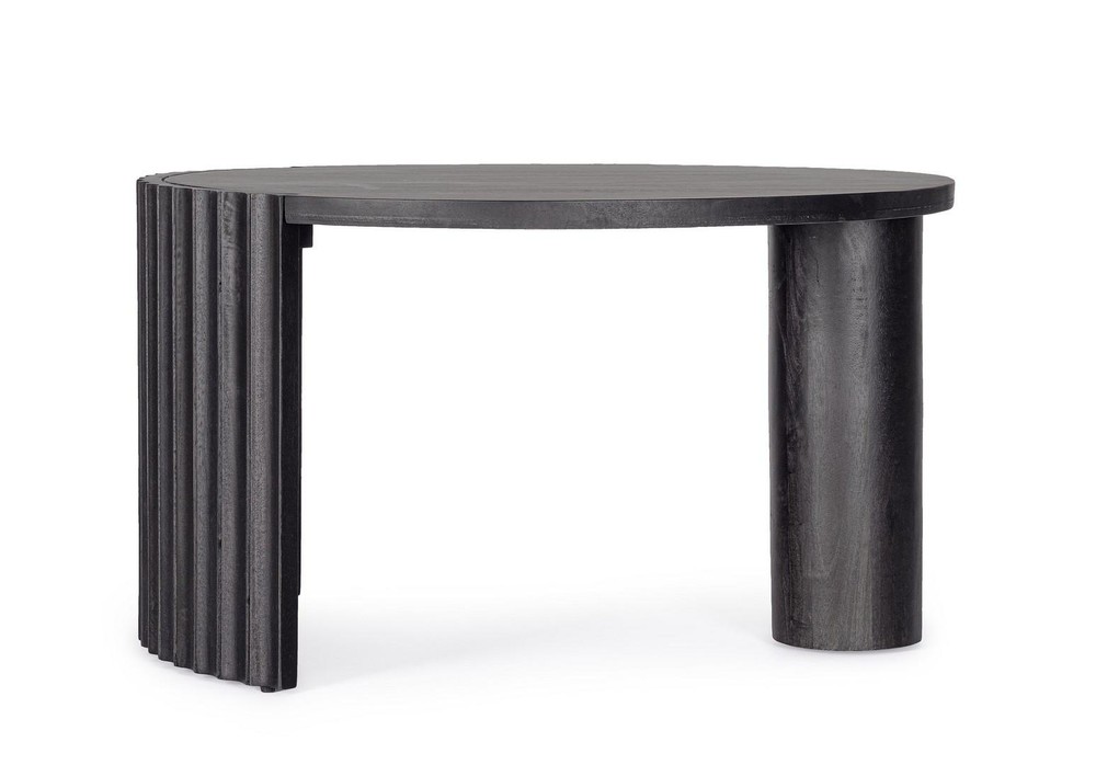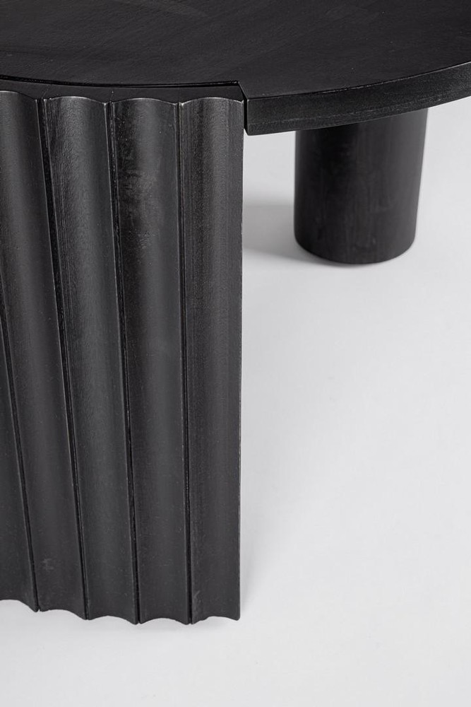Der Couchtisch „Orissa“ in Schwarz besteht aus einem stabilen Gestell aus Mangoholz und ist mit einer nitrozellulosebasierten Beschichtung veredelt. Der Sockel ist aus gerilltem Holz gefertigt, was dem Tisch einen besonderen optischen Akzent verleiht. Die Lieferung erfolgt zur einfachen Selbstmontage.