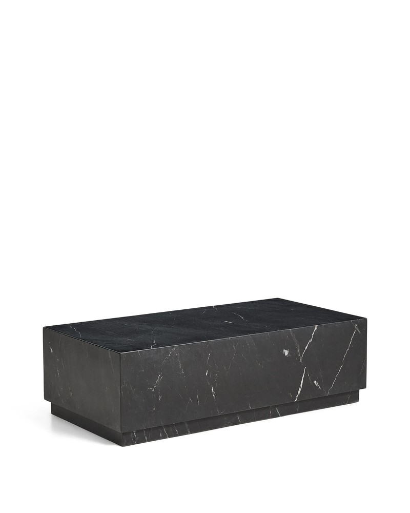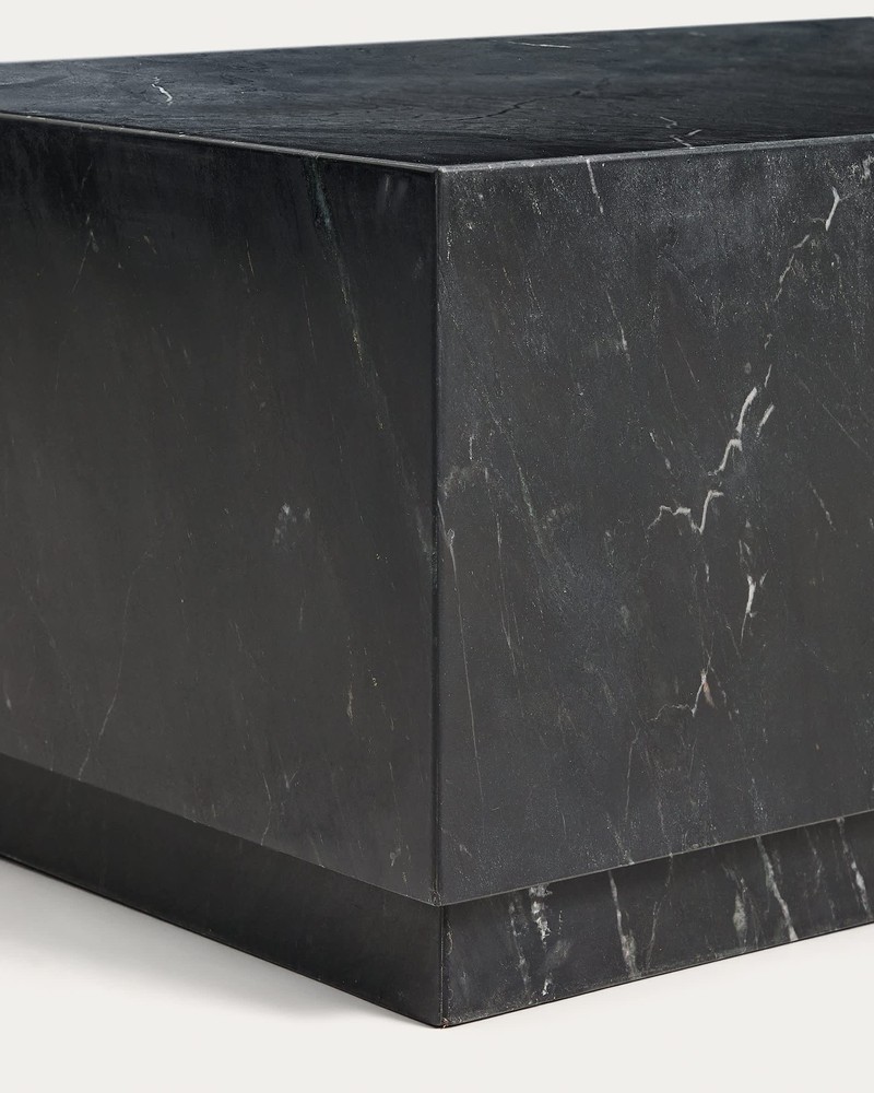 Dieser elegante Couchtisch vereint modernes Design mit hochwertiger Materialität und wird zum stilvollen Mittelpunkt Ihres Wohnzimmers. Der Korpus besteht aus robustem MDF, während die 15 mm dicken, massiven Marmorplatten in tiefem Schwarz den Tisch zu einem luxuriösen Blickfang machen. Die natürliche Maserung und die charakteristischen Farbnuancen des Marmors machen jedes Exemplar zu einem exklusiven Unikat – kein Tisch gleicht dem anderen. Der Tisch ist innen hohl konstruiert, wodurch das Gewicht reduziert und der Transport erheblich erleichtert wird, ohne dabei Stabilität oder Qualität zu beeinträchtigen. Ein zusätzlicher Kunststoffschutz im unteren Bereich sorgt dafür, dass Ihr Boden vor Kratzern geschützt bleibt, selbst wenn der Tisch bewegt wird. Mit seinen Maßen von ca. 100 x 50 x 30 cm (Länge x Breite x Höhe) bietet der Couchtisch ausreichend Fläche für dekorative Objekte, Bücher oder Ihre Lieblingsgetränke und fügt sich gleichzeitig harmonisch in unterschiedlichste Einrichtungsstile ein. Die Kombination aus edlem Marmor und modernem Design macht ihn ideal für minimalistische, zeitgenössische oder luxuriöse Wohnkonzepte. Dieser Couchtisch ist nicht nur funktional, sondern auch ein ästhetisches Statement. Er verbindet die kühle Eleganz von Marmor mit praktischen Details für den Alltag und schafft ein Möbelstück, das sowohl optisch als auch qualitativ überzeugt.
