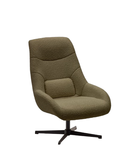 Gemütlicher Sitzplatz für stilvolle Entspannung nach einem langen Tag. Dieser moderne industriale Drehsessel verbindet Vielseitigkeit und Bewegungsfreiheit mit Komfort und Design. Der dunkelgrüne Stoff in Bouclé ist aufgrund der ultraweichen Polsterung voll im Trend, zudem verfügt die Sitzgarnitur über abgerundete Linien mit einem verstärktem Lendenbereich und die Metallsockel über eine schwarz lackierte Oberfläche. Mit seinem modernen industrialen  Design ist dieser Sessel eine stilvolle Ergänzung für verschiedene Räume.
