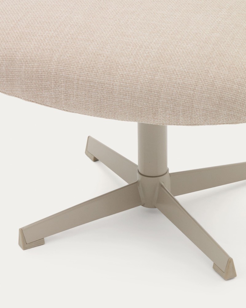 Erleben Sie Komfort und Funktionalität in elegantem Design mit dieser drehbaren Fußstütze, die sich ideal als Ergänzung zu Ihrem Lieblingssessel oder Ihrer Couch eignet. Der mittelgroße Sitz ist mit hochwertigem Polyurethanschaum gepolstert und bietet ein angenehm weiches, unterstützendes Sitzgefühl, das Ihre Füße und Beine optimal entlastet. Der Bezug aus beiger Chenille mit feiner Struktur verleiht der Fußstütze eine besonders weiche Haptik und einen natürlichen, wohnlichen Look, der sich mühelos in verschiedene Einrichtungsstile einfügt – von modern über skandinavisch bis hin zu klassisch-elegant. Die innere Struktur aus stabilem Pappelsperrholz sorgt für Langlebigkeit und Formbeständigkeit, sodass Sie lange Freude an diesem Möbelstück haben. Der stabile Fuß aus Metall mit dezent beigem Finish bildet einen stilvollen Kontrast zur weichen Polsterung und verleiht der Fußstütze zugleich sicheren Stand. Dank der drehbaren Konstruktion können Sie die Position flexibel anpassen, ohne den gesamten Hocker bewegen zu müssen – ideal, um jederzeit die bequemste Position zu finden. Mit den Maßen von ca. 58 x 39 x 42,5 cm (Breite x Höhe x Tiefe) bietet die Fußstütze ausreichend Fläche für die Beine, ohne viel Platz zu beanspruchen. Ob als funktionales Extra im Wohnzimmer, als praktische Ergänzung im Arbeitszimmer oder als gemütliche Ruhezone neben Ihrem Lieblingssessel – diese drehbare Fußstütze vereint Komfort, Qualität und stilvolles Design in einem hochwertigen Möbelstück.