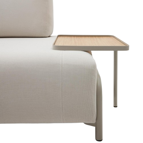 Gestalten Sie Ihr Sofa nach Ihren Wünschen. Dieses große Tablett hergestellt mit Eichenfurnier mit natürlicher Oberfläche und grauem Metallgestell passt sich jeder Ihrer Aktivitäten an. Dieses Tablett vereint Vielseitigkeit und Design.