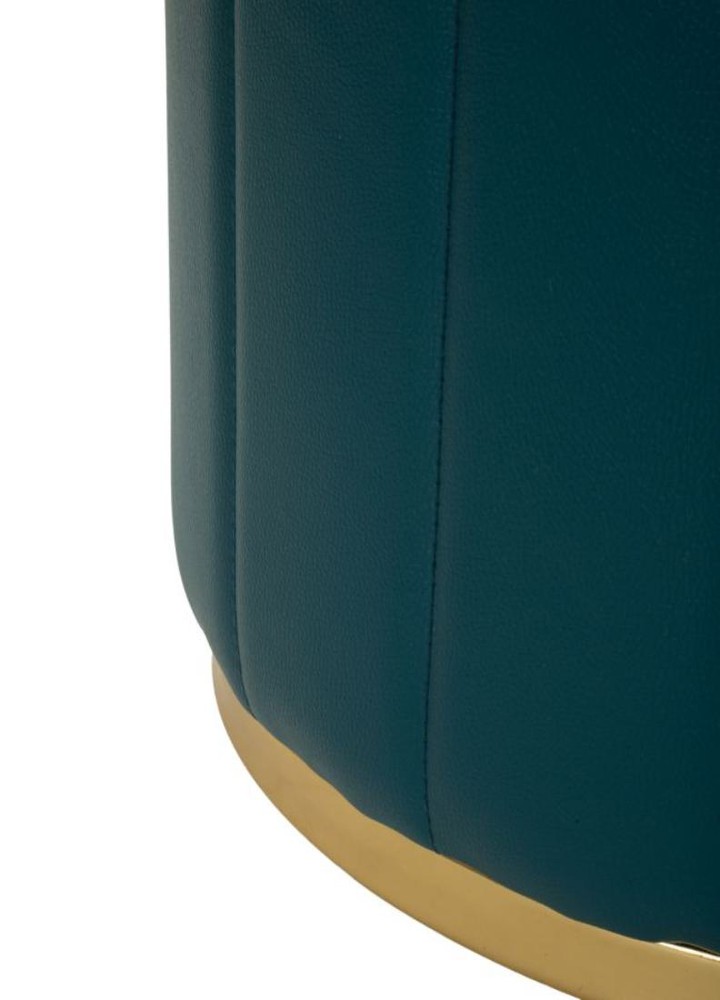 Dieser elegante Hocker vereint durchdachtes Design, hochwertige Materialien und praktische Funktionalität und wird zu einem stilvollen Highlight in Ihrem Zuhause. Die runde Form, kombiniert mit dem tiefen Dunkelblau des Sitzes und feinen goldfarbenen Akzenten, verleiht dem Möbelstück eine moderne, luxuriöse Ausstrahlung und zieht sofort alle Blicke auf sich. Die stabile Konstruktion aus MDF und Pinie sorgt für Langlebigkeit und Standfestigkeit. Die Sitzfläche ist mit weichem Polyurethan in Dunkelblau bezogen, das angenehmen Komfort bietet und pflegeleicht ist. Oben und unten setzen dezente goldfarbene Ringe elegante Akzente, die den kräftigen Farbton harmonisch ergänzen und dem Design eine edle Note verleihen. Besonders praktisch: Die runde Sitzfläche fungiert gleichzeitig als Deckel und öffnet sich zu einem großzügigen Stauraum. Hier können Sie Kissen, Decken oder andere Wohnaccessoires diskret verstauen, sodass der Hocker Design, Komfort und Funktion in einem Möbelstück vereint. Mit Maßen von ca. 46,5 x 44 x 46,5 cm (Breite x Höhe x Tiefe) ist der Hocker kompakt, bietet aber eine großzügige Sitzfläche und vielseitige Einsatzmöglichkeiten – als komfortable Sitzgelegenheit, dekoratives Möbelstück oder cleverer Stauraum. Dieser Hocker verbindet edle Materialien, luxuriöse Details und praktischen Stauraum in einem modernen, runden Möbelstück und wird so zu einem eleganten, funktionalen Highlight in jedem Wohnbereich.
