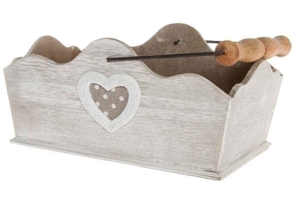 Der Holzkorb Holm ist aus MDF und Farbe Weiß Antik. Er ist mit einem stabilen Griff aus Metall und Holz ausgestattet. Ideal für Aufbewahrung oder Transport. Auch als Deko-Objekt im Shabby Chic Look für ihr Zuhause.
