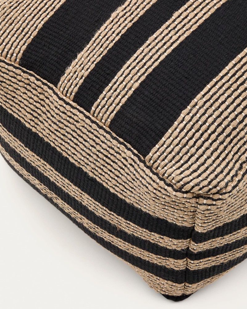 Pouf Aylin 60 x 40 x 60 cm Baumwolle Jute Beige Schwarz