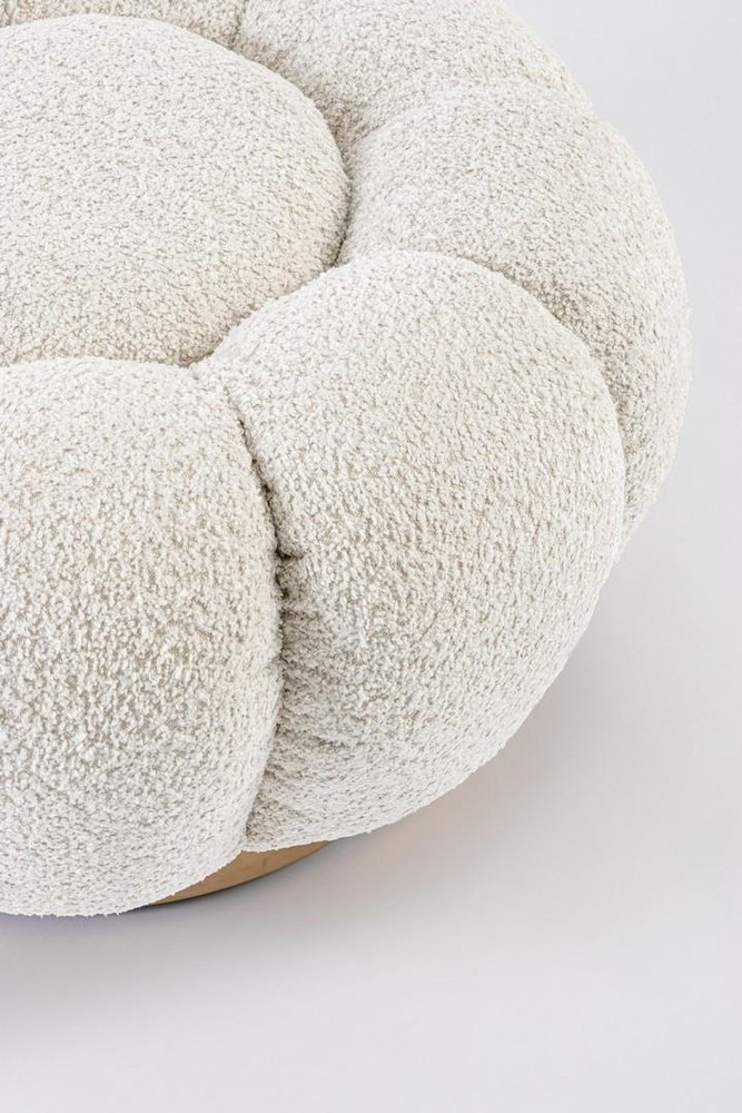 Dieser außergewöhnliche Pouf ist mehr als nur eine Sitzgelegenheit – er ist ein echtes Designstatement. Mit seiner charmanten, blumenförmigen Silhouette zieht er alle Blicke auf sich und verleiht jedem Raum eine sanfte, feminine Eleganz. Ob im Wohnzimmer, Schlafzimmer oder Ankleidebereich – dieser Pouf fügt sich harmonisch in verschiedene Einrichtungsstile ein und wird zum Highlight jeder Einrichtung. Das stabile Gestell aus MDF und Sperrholz bildet die solide Basis für die weiche Polsterung aus hochwertigem Polyurethanschaum. So bietet der Pouf nicht nur einen sicheren Stand, sondern auch einen angenehm komfortablen Sitz. Der Bezug aus strapazierfähigem Polyester begeistert durch seine luxuriöse Bouclé-Optik in warmem Beige – ein Trendmaterial, das durch seine weiche Struktur und elegante Ausstrahlung überzeugt. Ein besonderes Highlight ist der edle Dekoring am Boden, gefertigt aus goldfarbenem Stahl. Dieses stilvolle Detail verleiht dem Pouf einen Hauch von Glamour und sorgt für einen modernen, hochwertigen Look. Mit seinen großzügigen Maßen von ca. 65 x 35 x 65 cm bietet der Pouf vielseitige Einsatzmöglichkeiten: als zusätzlicher Sitzplatz, als bequeme Fußablage oder sogar als dekoratives Element in einer gemütlichen Leseecke.