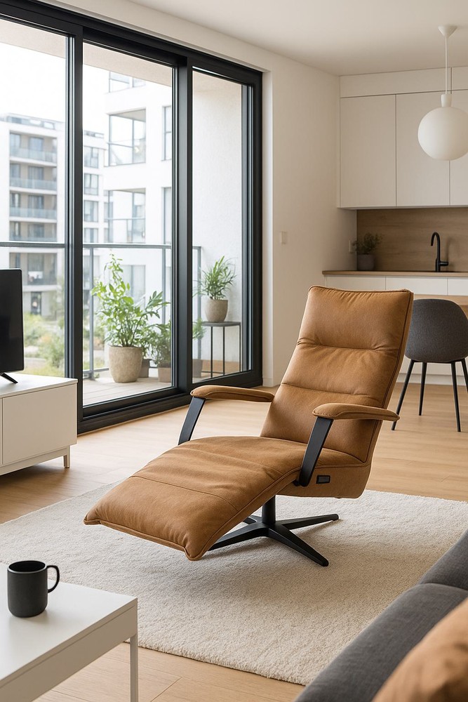 Dieser Sessel bringt Entspannung mit sich. Denn es ist ein Relax-Sessel. Dieser kann motorisch verstellt werden. Und zwar das Rückenteil separat und das Fußteil separat. Mit einer großen Sitztiefe und weich gepolsterten Sitzfläche und Rückenlehne ist dieser Sessel ein toller Entspannungsort. Das Metallgestell lässt den Ledersessel modern wirken. Besonders hieran ist die Drehfunktion. Bezogen ist der Loungesessel mit feinem, hochwertigen Rindsleder. Die Qualität ist hier auf Anhieb sichtbar und spürbar.
