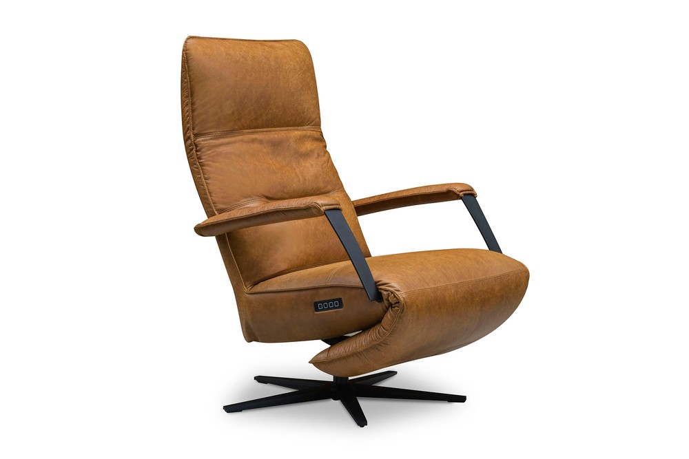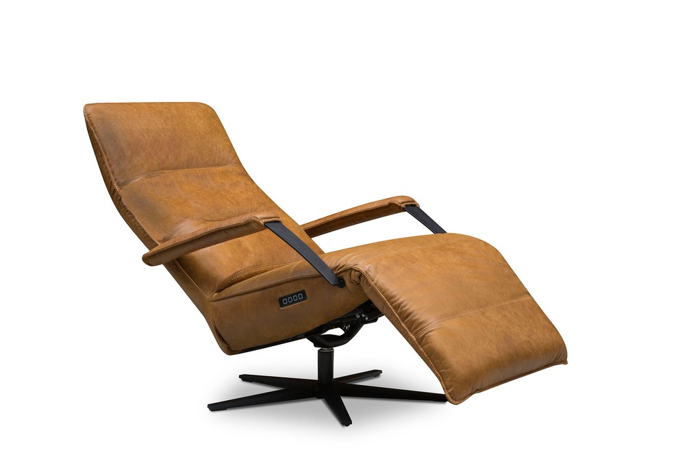 Relax-Sessel Alhambra Leder Cognac Sternfuß aus Stahl mit Motor