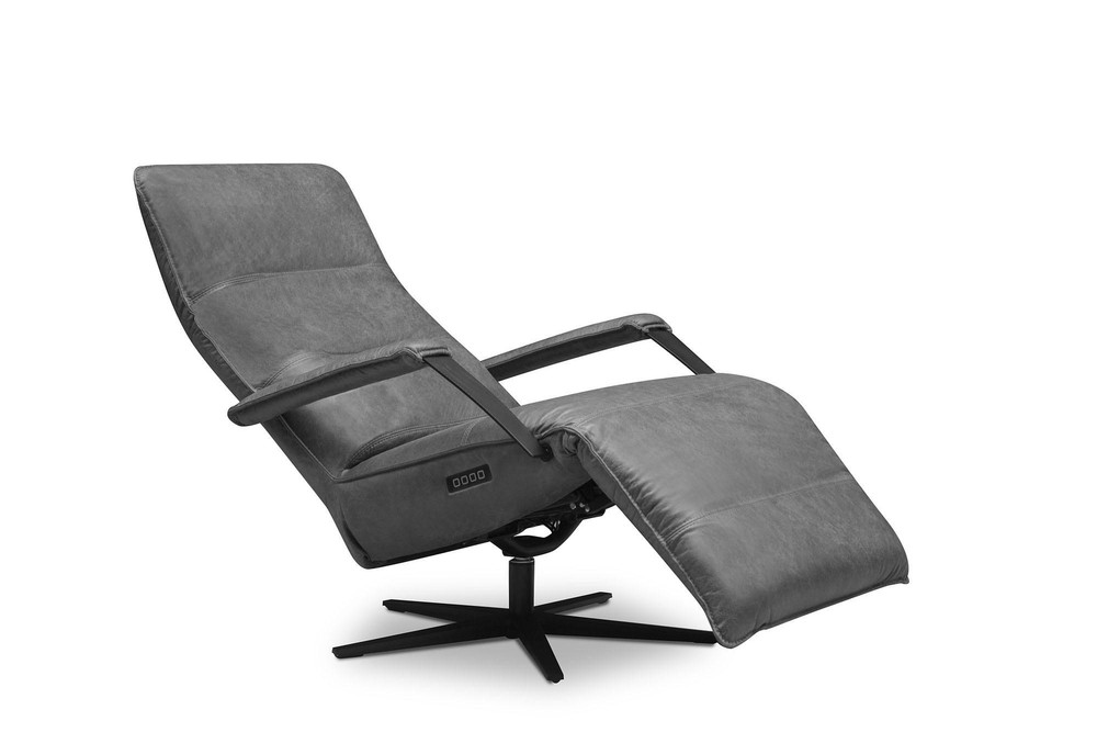 Relax-Sessel Alhambra Leder Grau Sternfuß aus Stahl mit Motor