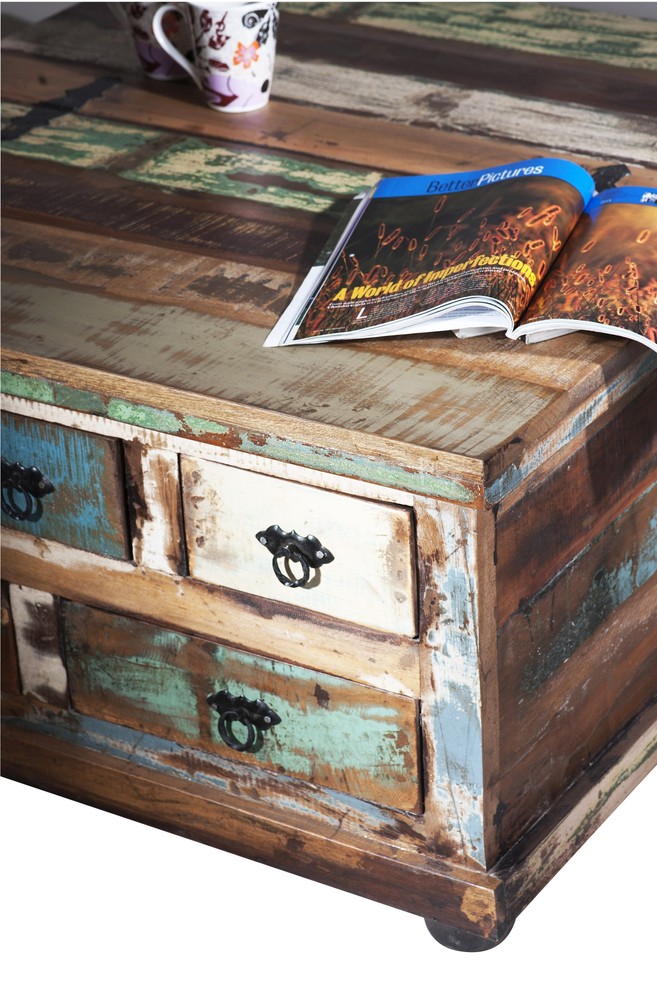 RIVERBOAT Couchtischtruhe Altholz Bunt