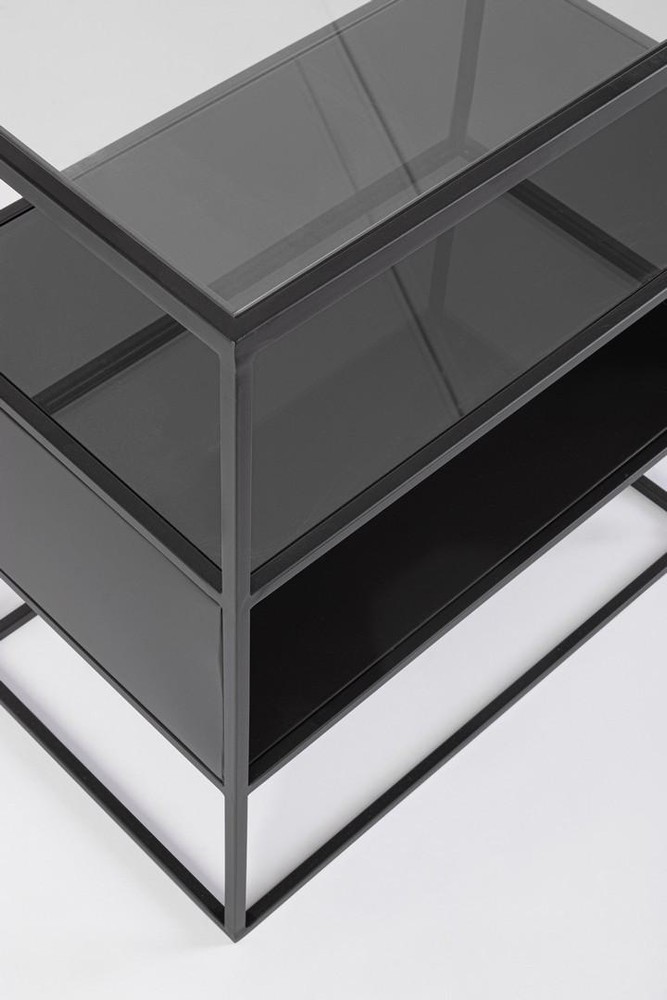 Dieser stilvolle Schrank verbindet klare Linienführung mit hochwertigen Materialien und schafft so ein Möbelstück, das gleichermaßen funktional wie dekorativ ist. Mit seinem offenen Gestell aus robustem Stahl und der eleganten Glasplatte wirkt er luftig und modern – perfekt für zeitgenössische Wohnkonzepte, in denen Leichtigkeit und Struktur im Einklang stehen. Das Gestell besteht aus pulverbeschichtetem Stahl mit mattschwarzem Finish, das nicht nur optisch überzeugt, sondern auch besonders widerstandsfähig und langlebig ist. Die epoxidische Pulverbeschichtung schützt die Oberfläche zuverlässig vor Kratzern und Korrosion – ideal für den täglichen Gebrauch. Die Tischplatte aus klarem Glas bildet dazu einen stilvollen Kontrast und sorgt für Transparenz und Leichtigkeit im Design. Im Zentrum des Schranks befindet sich ein zusätzliches offenes Fach – ebenfalls aus Stahl gefertigt, mit einer passenden Glasablage. Dieses Fach bietet praktischen Stauraum für Bücher, Deko-Objekte, Technik oder Alltagsgegenstände und macht den Schrank zu einem vielseitig einsetzbaren Möbelstück – ob im Wohnzimmer, Flur, Schlafzimmer oder Homeoffice. Mit seinen kompakten Maßen von ca. 30 x 54 x 50 cm (Breite x Höhe x Tiefe) eignet sich der Schrank ideal als Beistellmöbel, kleine Anrichte oder als stilvolle Ablagefläche neben dem Sofa oder Bett. Trotz seiner geringen Größe wirkt er durch das offene Design großzügig und modern – ein echtes Statement für alle, die minimalistisches Design mit industriellem Charme verbinden möchten.