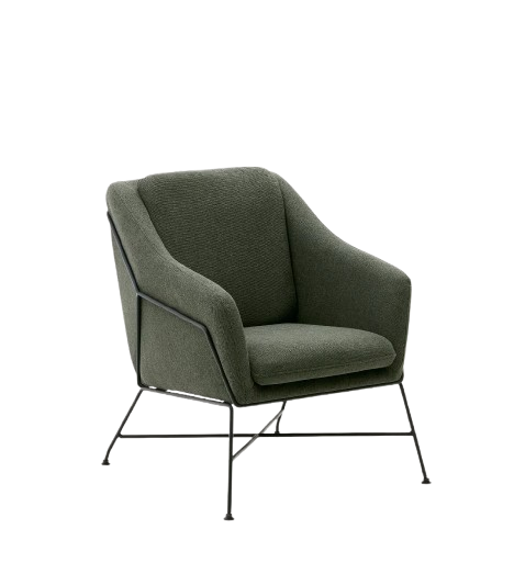 Gemütlicher Sitzplatz für stilvolle Entspannung nach einem langen Tag. Dieser Sessel hat ein modernes Design. Es verfügt über ein glattes Gewebe und ist zudem auch gepolstert.  Die Sitzgarnitur ist Grün mit asymmetrischen Formen und freiliegenden Strukturen, welches zudem  dass nicht nur für die Optik, sondern auch für Komfort und Pflegeleichtigkeit sorgt. Das Gestell ist aus schwarz lackiertem Stahl und bietet an den Beinen Plastikschutz um den Boden schützen. Mit seinem modernen Design ist dieser Sessel eine stilvolle Ergänzung für verschiedene Räume.