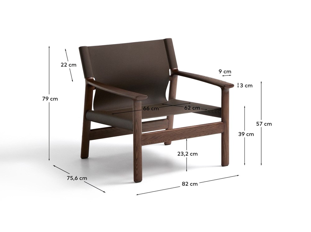 Sessel Jan 77.5 x 79 x 75.6 cm Recycelte Lederfasern Eschenholz Dunkelbraun