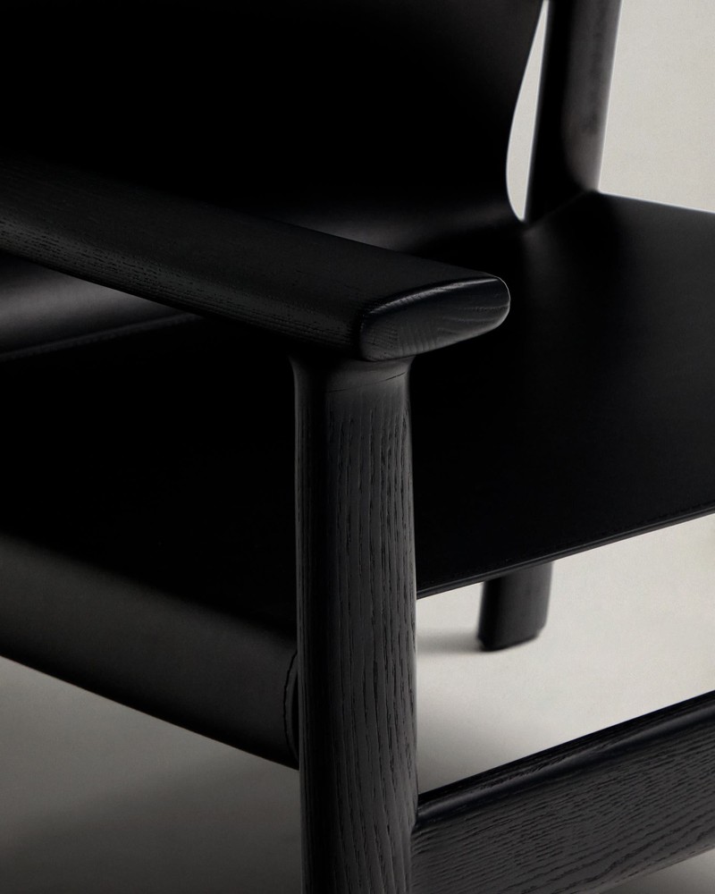 Sessel Jan 77.5 x 79 x 75.6 cm Recycelte Lederfasern Eschenholz Schwarz