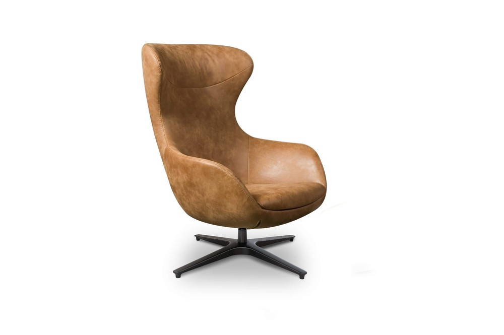 Sessel Peggy mit Drehfuß aus Stahl Leder Braun Drehsessel