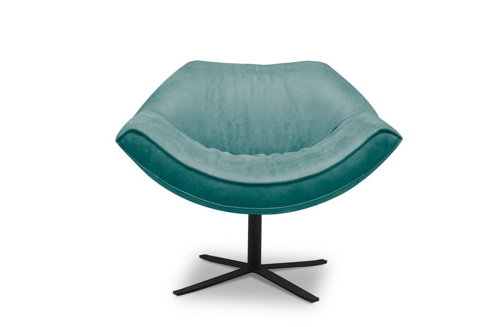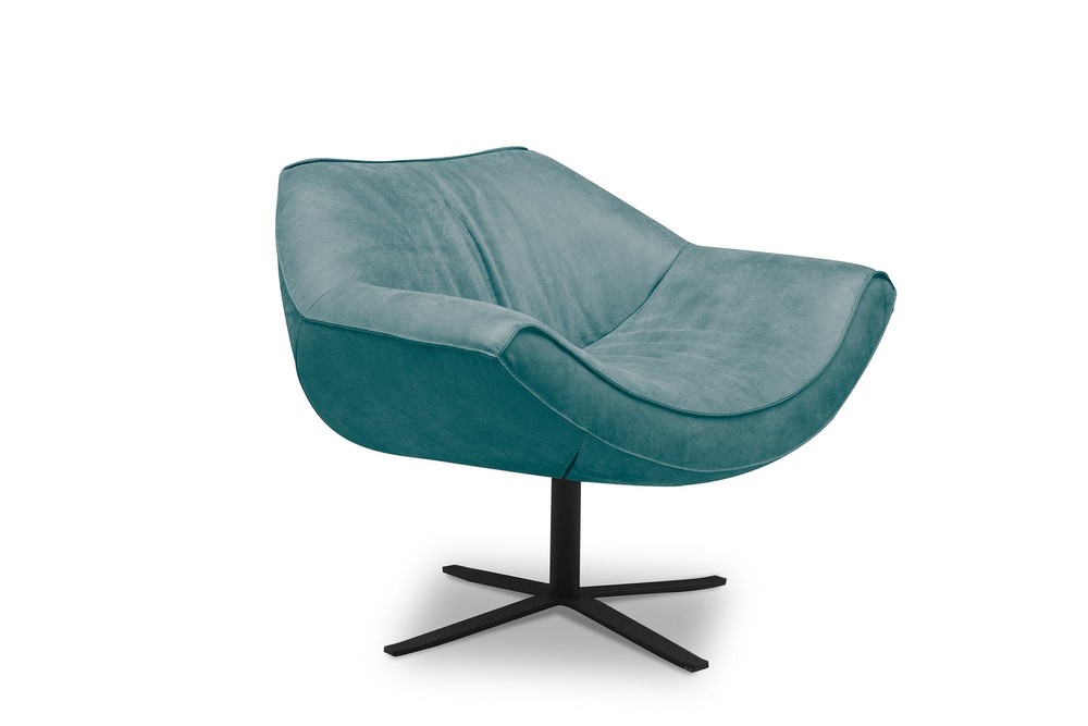 Sessel Willi mit Drehfuß aus Stahl Leder Blau Drehsessel