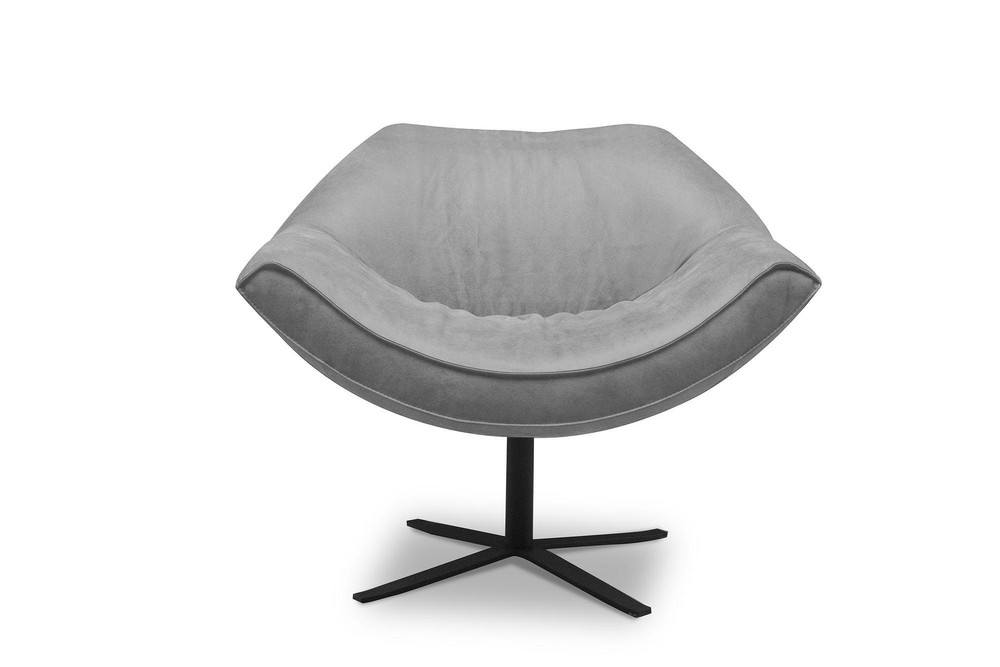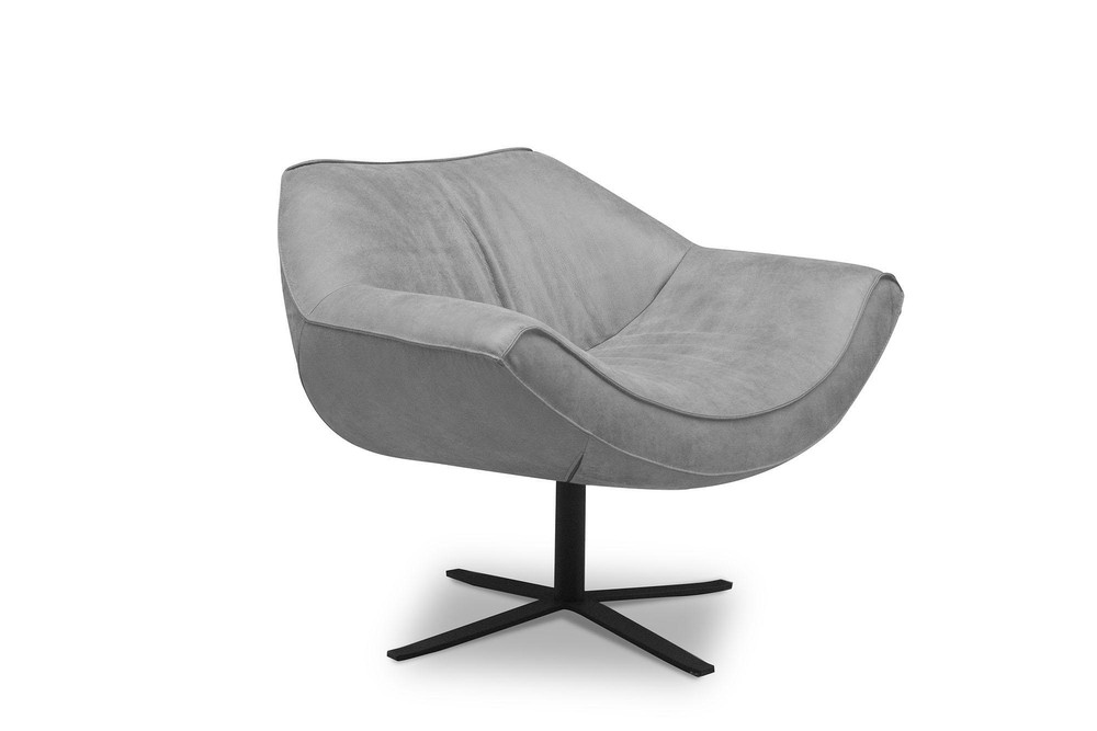 Sessel Willi mit Drehfuß aus Stahl Leder Mausgrau Drehsessel