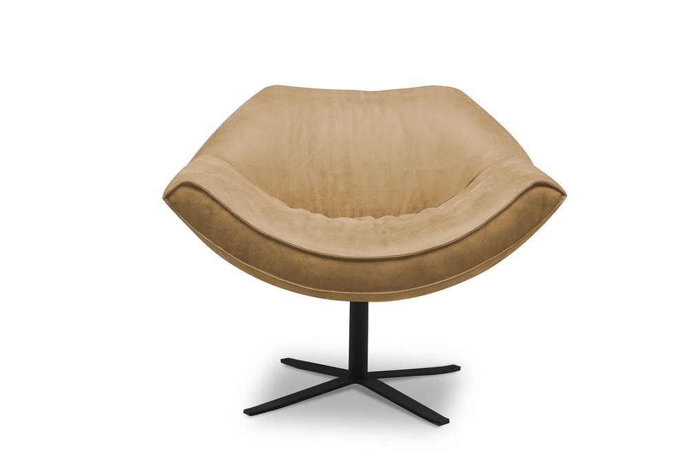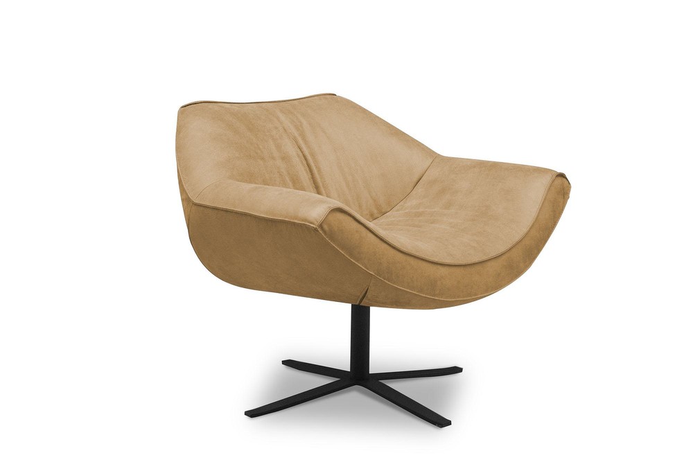 Sessel Willi mit Drehfuß aus Stahl Leder Sand Drehsessel
