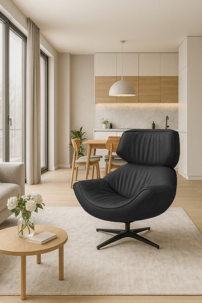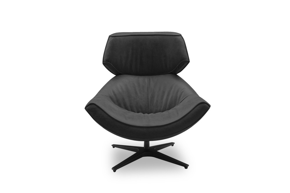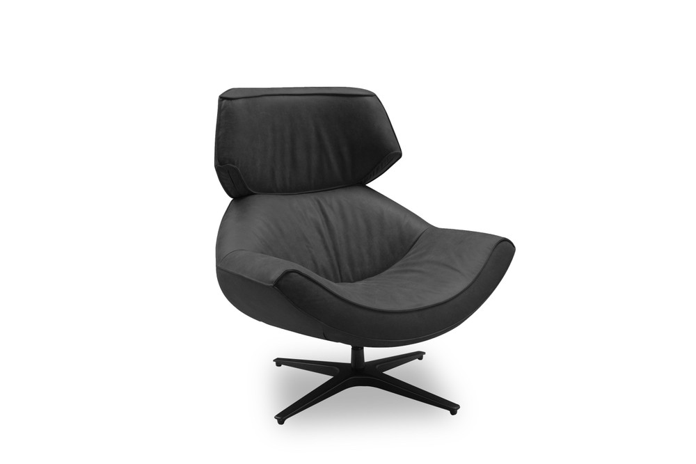 Sessel William mit Drehfuß aus Stahl Leder handgebürstet Schwarz